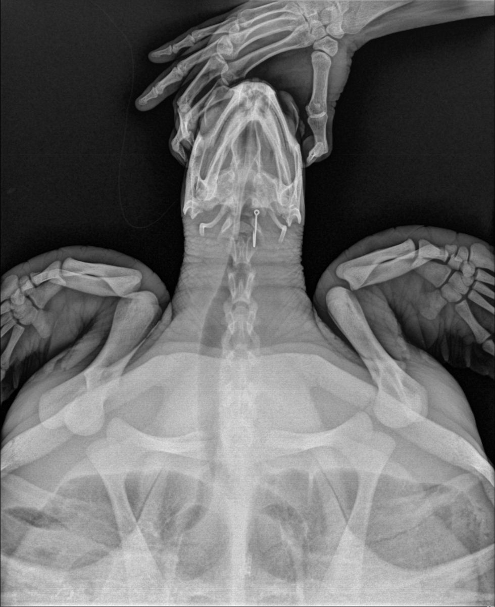 เจ้าหน้าที่ทำการตรวจร่างกายพบเป็นเต่าตนุ (Chelonia mydas) อยู่ในช่วงวัยรุ่น ขนาดกระดองกว้าง 50 เซนติเมตร ขนาดกระดองยาว 53 เซนติเมตร น้ำหนักประมาณ 17.5 กิโลกรัม ความสมบูรณ์ของร่างกายอยู่ในระดับสมบูรณ์ปกติ (BCS 3/5) สภาพภายนอกไม่พบบาดแผล มีเพรียงขนาดเล็กเกาะบริเวณกระดองท้อง สภาพร่างกายแข็งแรง ตอบสนองดี ตรวจพบเส้นเอ็นติดอยู่ที่บริเวณช่องปาก สัตวแพทย์ได้ทำการตรวจร่างกายโดยการถ่ายภาพรังสี พบเบ็ดตกปลาติดอยู่ภายในช่องปาก 1 ชิ้น