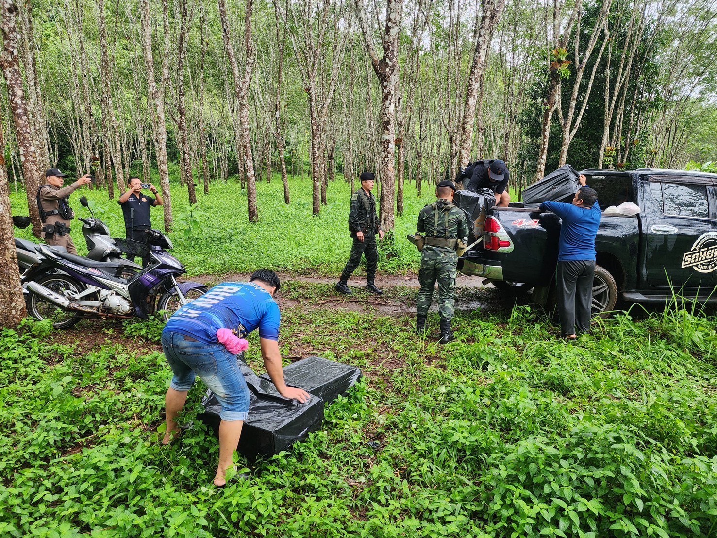 ต่อมาเวลา 14.00 น. ขณะที่เจ้าหน้าที่เจ้าหน้าที่กำลังลาดตระเวนเฝ้าตรวจ บริเวณ สวนยางบ้านไร่อ้อย ม.9 ต.หนองลู อ.สังขละบุรี จ.กาญจนบุรี สังเกตพบวัตถุต้องสงสัยว่าเป็นสิ่งของผิดกฎหมายวางอยู่ในสวนยางดังกล่าว จึงเข้าทำการตรวจสอบอย่างละเอียด พบบุหรี่หนีภาษีรวมทั้งสิ้น 5,000 ซอง (500 คอตตอน) บรรจุอยู่ในกล่องลังกระดาษห่อหุ้มด้วยถุงขยะสีดำ ซึ่งเจ้าหน้าที่คาดว่าคนร้ายนำมาวางไว้ เพื่อรอให้บุคคลผู้ถูกว่าจ้าง ลักลอบนำบุหรี่หนีภาษีดังกล่าวเข้าไปยังพื้นที่ตอนใน แต่เจ้าหน้าที่ลาดตระเวนพบเสียก่อน โดยมูลค่าเปรียบเทียบราคาค่าปรับของสรรพสามิต เป็นเงินกว่า 4.5 ล้านบาท