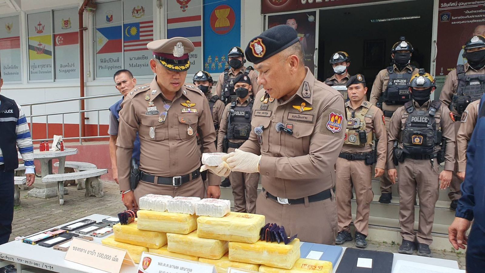 เวลา 13.30 น. วันที่ 8 ตุลาคม 2568 พล.ต.ต.มานพ เสนากูล ผบก.ภ.จว.เชียงราย ร่วมกันแถลงข่าวการจับกุมเครือข่ายค้ายาบ้า จำนวน 100,000 เม็ด โดยสามารถจับกลุ่มผู้ต้องหาได้จำนวน 4 คน