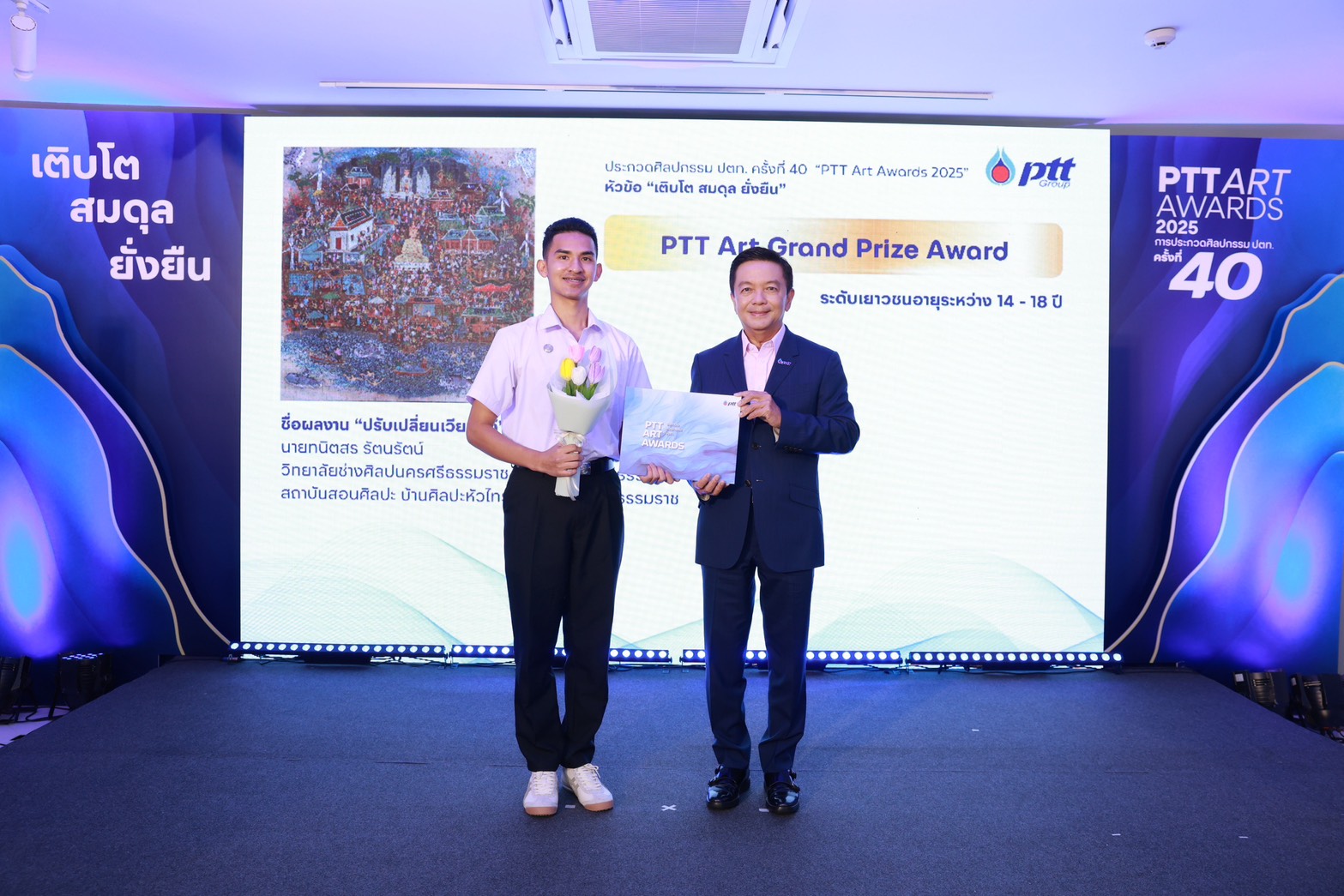 “ผมขอขอบคุณผู้ร่วมส่งผลงานเข้าประกวดทุกท่าน และขอแสดงความยินดีกับผู้ที่ได้รับรางวัล ที่ร่วมสร้างคุณค่าให้กับเวทีนี้ รวมทั้งขอเป็นกำลังใจให้กับเยาวชนและผู้ที่รักในศิลปะทุกท่าน กล้าที่จะก้าวออกมานำเสนอและสร้างสรรค์ผลงาน เพื่อพัฒนาตัวเองและทำให้เกิดการพัฒนาในวงการศิลปะของไทยต่อไป” ดร.คงกระพัน กล่าวเสริมในตอนท้ายทั้งนี้ ปตท. ขอเชิญชวนร่วมชื่นชมและให้กำลังใจผลงานของศิลปิน ได้ที่ PTT ART GALLERY ณ บ้านเจ้าพระยา ถนนพระอาทิตย์ ตลอดเดือนตุลาคม 2568 โดยไม่มีค่าใช้จ่ายในการเข้าชม