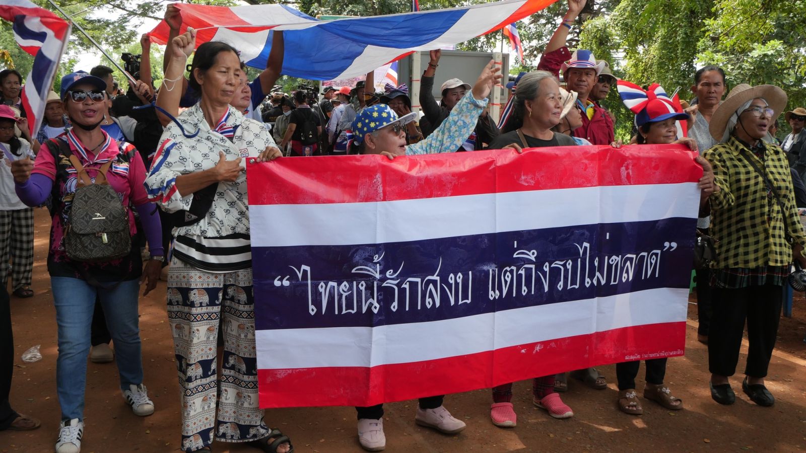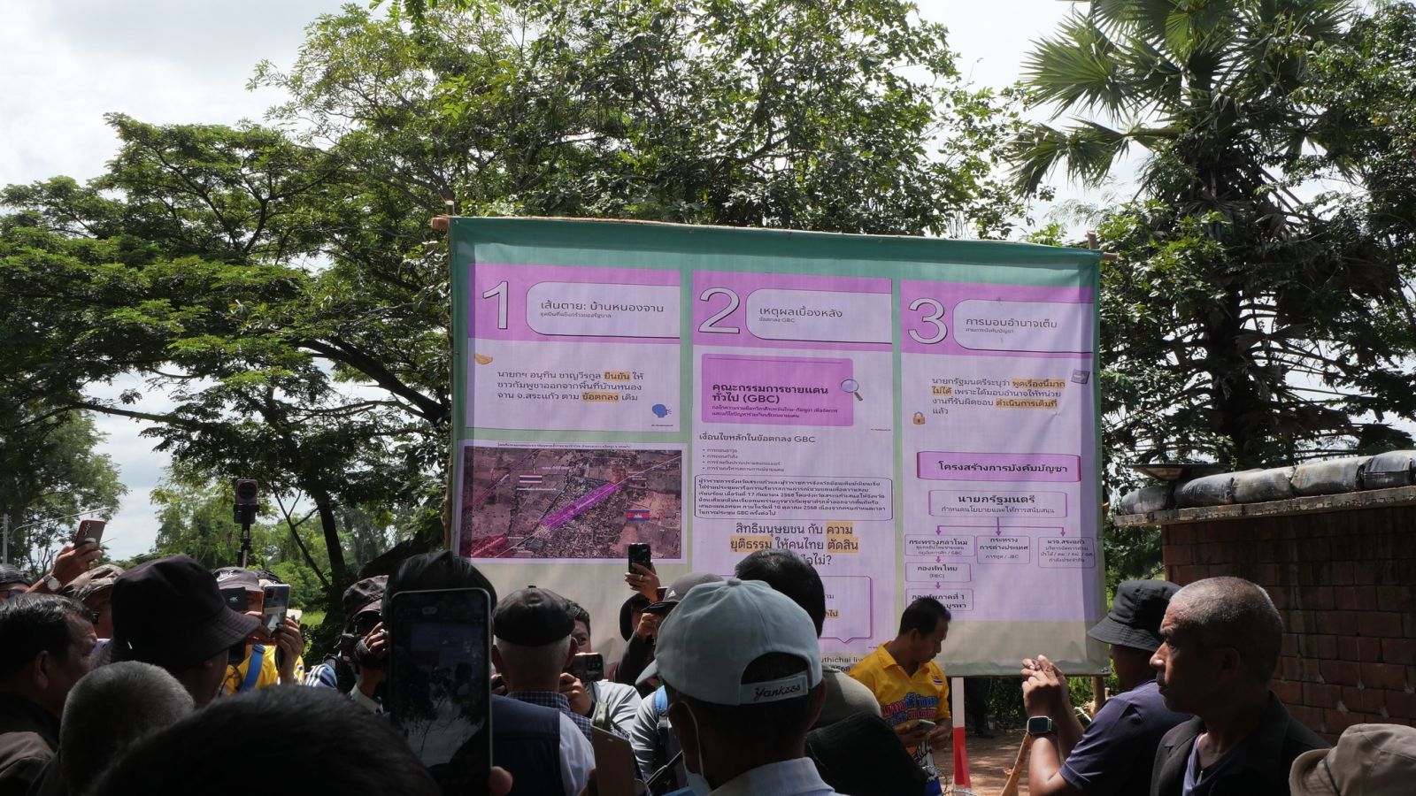 แต่ทั้งนี้ ทั้งหมดอยู่ในบริเวณที่ไม่ใช่จุดปะทะ ประชาชนเดินทางมาเพื่อแสดงสัญลักษณ์และให้กำลังใจกำลังพลทหาร ฝ่ายปกครอง ที่ปฏิบัติหน้าที่ตามแนวชายแดนไทย - กัมพูชา จ.สระแก้ว ซึ่งเจ้าหน้าที่ไม่อนุญาตให้เข้าใกล้ริมรั้ว เนื่องจากเกรงเรื่องความปลอดภัย ซึ่งฝ่ายปกครองได้นำป้ายขนาดใหญ่มาปิดประกาศบริเวณบ้านหนองจาน อ.โคกสูง จ.สระแก้ว ให้ประชาชนรับทราบ ใจความของป้ายระบุถึงขั้นตอน เส้นตายบ้านหนองจาน