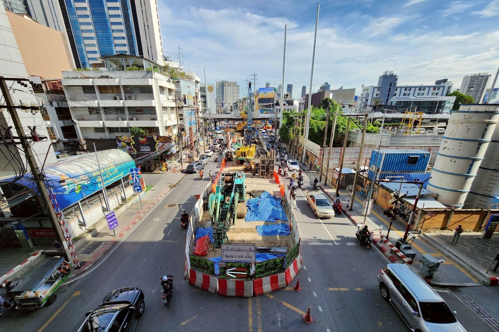 ในส่วนของถนนราชปรารภที่อยู่โดยรอบพื้นที่ก่อสร้างงานโยธาของโครงการฯ เช่นเดียวกันนั้น พล.ต.ต.ธวัช วงศ์สง่า รองผู้บัญชาการตำรวจนครบาล พร้อมด้วย นายจิรโรจน์ ศุกลรัตน์ รองผู้อำนวยการ สนข. รักษาราชการแทนผู้อำนวยการ สนข. และผู้แทน รฟม. ได้ลงพื้นที่ติดตามและตรวจสอบสภาพการจราจรอย่างต่อเนื่อง เพื่อหาแนวทางการลดผลกระทบด้านการจราจร โดยเตรียมวางแผนการทดลองปรับช่องการเดินรถบนถนนราชปรารภ เป็นเดินรถทางเดียว ตามรอบสัญญาณไฟจราจร (Reversible lane)