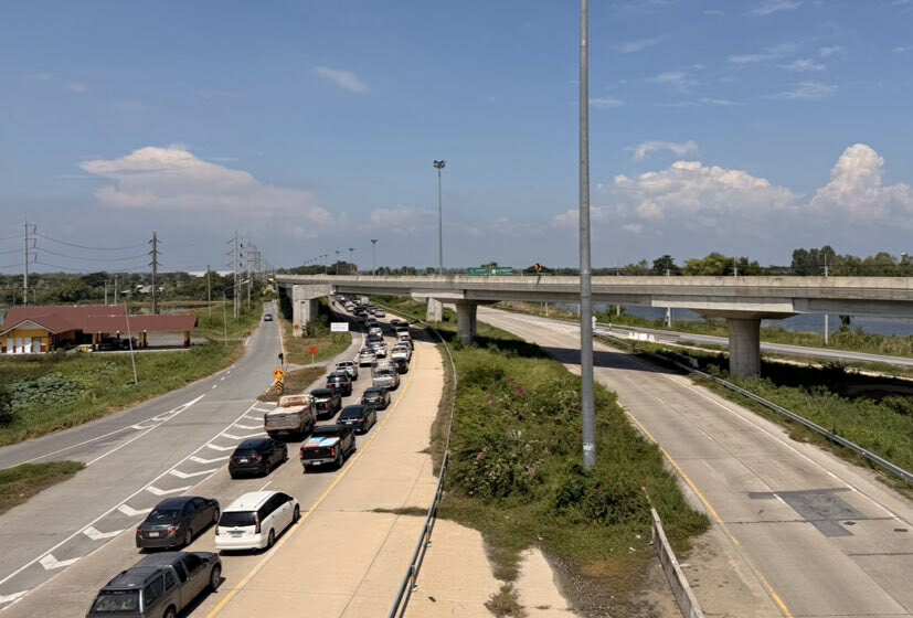 ทางหลวงหมายเลข 340 (บางบัวทอง-สุพรรณบุรี) ในพื้นที่ จ.สุพรรณบุรี บริเวณจุดซ่อมสร้าง ฝั่งขาเข้า ปริมาณรถปานกลาง เคลื่อนตัวได้ตลอดไม่หยุดนิ่ง ท้ายแถวสะสม 700 ม. จากจุดซ่อมสร้าง ส่วนฝั่งขาออก ปริมาณรถมาก เคลื่อนตัวได้ช้าสลับหยุดนิ่งเป็นระยะ เนื่องจากสามารถเดินรถได้ 1 ช่องทาง ท้ายแถวสะสม 2 กม. จากจุดซ่อมสร้าง #รายงานจราจร #รถติด #แนวก่อสร้าง #FM91