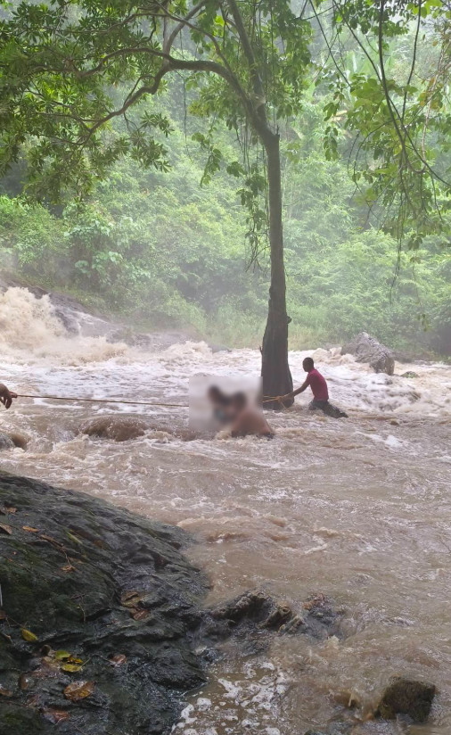 เจ้าหน้าที่ประจำน้ำตกสาริกาได้เข้าดำเนินการช่วยเหลือทันทีโดยใช้เชือกผูกติดกับต้นไม้เป็นเส้นทางนำนักท่องเที่ยวทั้ง 3 คน ข้ามกลับมายังฝั่งได้อย่างปลอดภัย ไม่มีผู้ได้รับบาดเจ็บ