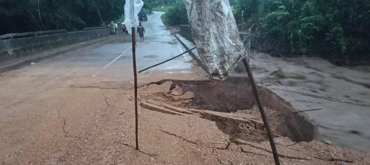 คอสะพานถูกน้ำกัดเซาะชำรุด ต้องปิดการจราจรเพื่อความปลอดภัย