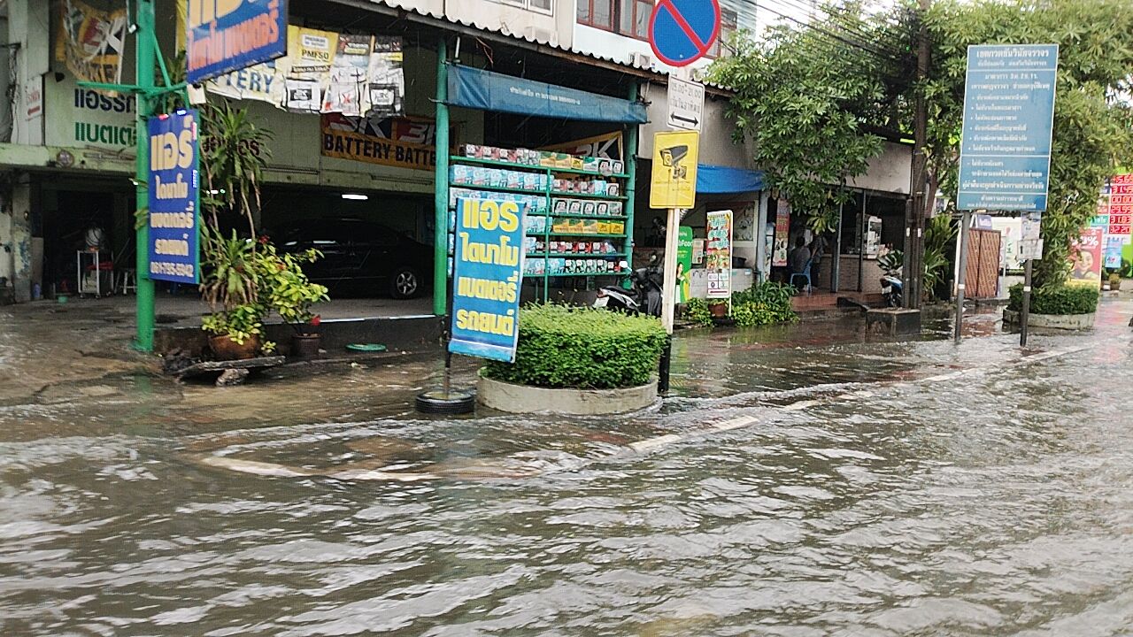13.00 น. ถนนปู่เจ้าสมิงพราย ช่วงซอยวัดมหาวงษ์ น้ำท่วมขังสูง ทั้งขาเข้า และขาออก รถติดหนักมาก #รายงานจราจร #รถติด #น้ำท่วม #FM91