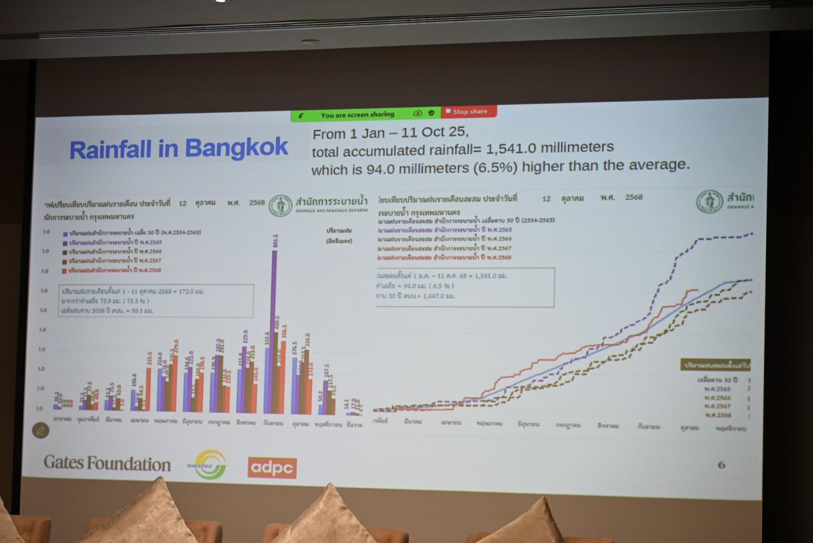โดยรองผู้ว่าฯ ทวิดา ได้นำเสนอเรื่องการจัดการน้ำท่วมในพื้นที่ การแก้ไขจุดเสี่ยงน้ำท่วม ซึ่ง กทม. ประสบปัญหาน้ำท่วมเนื่องจากลักษณะทางภูมิประเทศ พร้อมเน้นย้ำถึงความสำคัญของการวางแผนที่ขับเคลื่อนด้วยข้อมูลเพื่อรับมือกับสถานการณ์น้ำท่วมด้วยการใช้เทคโนโลยี เช่น ระบบตรวจวัดน้ำท่วมบนถนน ระบบเรดาร์ และใช้ระบบ AI Nowcast สำหรับการพยากรณ์ฝนล่วงหน้า 3 ชั่วโมง และระบบอื่น ๆ ซึ่งล้วนเป็นระบบที่ประชาชนสามารถเข้าถึงได้