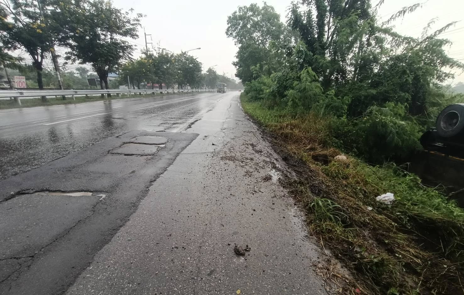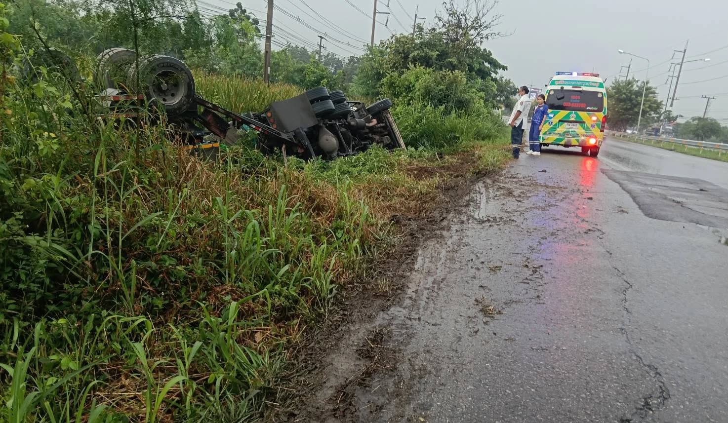 ถนนเพชรเกษม ขาออก เลยปั๊ม ปตท. ท่าราบ อ.เมือง จ.ราชบุรี ไปเล็กน้อย รับแจ้งอุบัติเหตุ รถบรรทุกเสียหลักตกข้างทาง แล้วพลิกคว่ำ มีผู้ได้รับบาดเจ็บ ตัวรถไม่ได้กีดขวางการจราจร ตามหลังมาโปรดระวัง #รายงานจราจร #รถติด #อุบัติเหตุ #FM91
