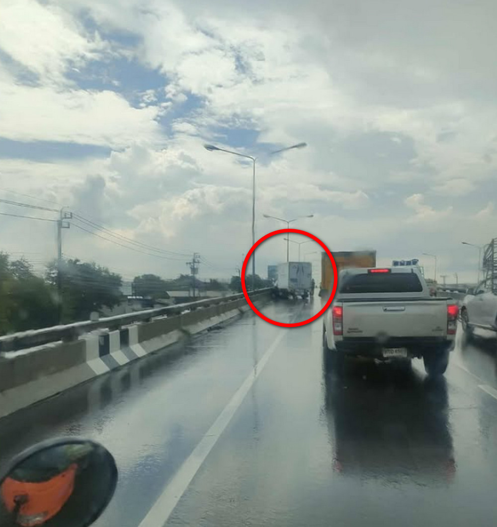 13.22 น. ถนนสาย 345 ขาเข้า มุ่งหน้ากาญจนาภิเษก บนสะพานข้ามคลองลากค้อน อุบัติเหตุ รถบรรทุก ชนกับรถจักรยานยนต์ กีดขวางช่องทางซ้าย รถติดมาก ในพื้นที่ฝนตกหนัก #รายงานจราจร #รถติด #อุบัติเหตุ #FM91