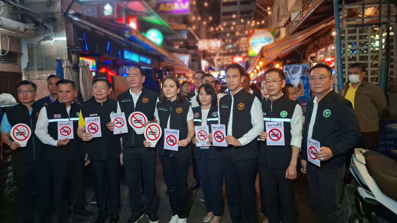 วันที่ 16 ต.ค. 2568 น.ส.จิตศ์ตราฎ์ หมีทองธนกรณ์ เลขานุการรัฐมนตรีว่าการกระทรวงสาธารณสุข, นายแพทย์มณเฑียร คณาสวัสดิ์ อธิบดีกรมควบคุมโรค เจ้าหน้าที่กรมสนับสนุนบริการสุขภาพ และเจ้าหน้าที่สำนักงานคณะกรรมการคุ้มครองผู้บริโภค (สคบ.) ร่วมกันลงพื้นที่ เพื่อตรวจสอบและกวดขันการจำหน่ายบุหรี่ไฟฟ้า และการจัดเขตปลอดบุหรี่ตามกฎหมาย โดยจะต้องติดป้ายสติ๊กเกอร์ห้ามสูบบุหรี่ให้ชัดเจน โดยมีเป้าหมายเพื่อสร้างความเชื่อมั่นในมาตรการด้านความปลอดภัยและสุขภาพของประชาชนและนักท่องเที่ยว เพื่อสร้างพื้นที่ปลอดบุหรี่และบุหรี่ไฟฟ้าตามกฎหมายในสังคมไทย โดยเจ้าหน้าที่ลงพื้นที่ตรวจสถารประกอบการร้านอาหาร ผับบาร์ ร้านนวด สปา ภายในซอยสีลม 4 แขวงสุริยวงศ์ เขตบางรัก กทม