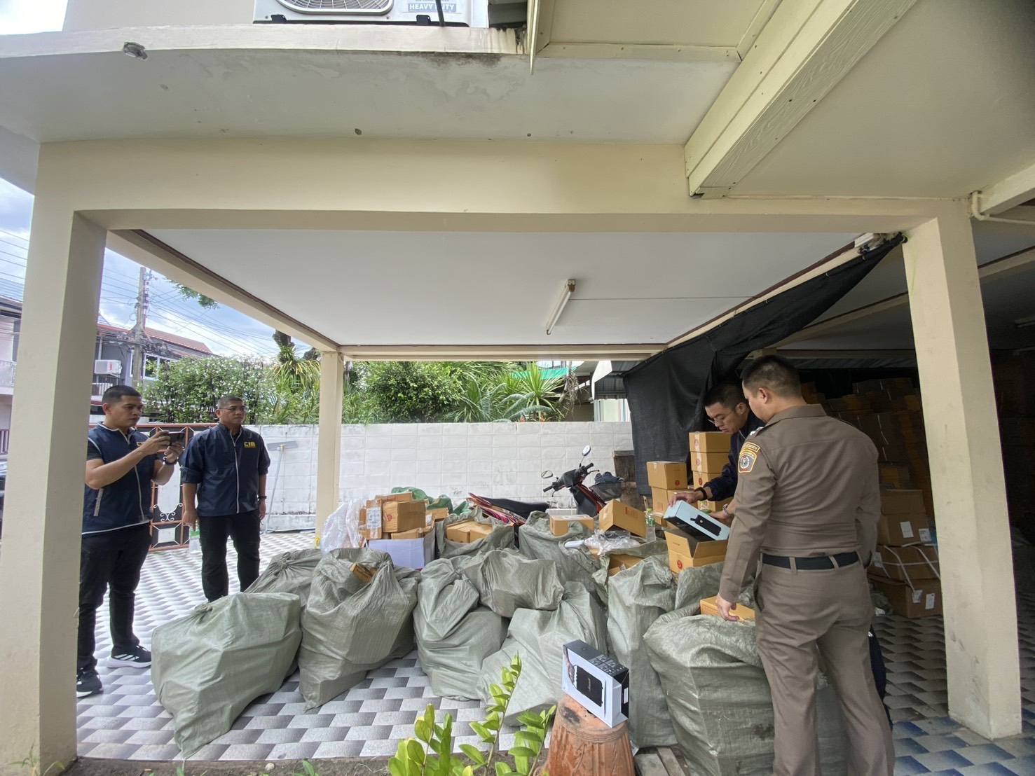 จากการตรวจสอบบ้านหลังดังกล่าว พบว่ามีการดัดแปลงเป็นสถานที่ เก็บสินค้าปกปิดหน้าบ้านไว้ไม่ให้ผู้คนทั่วไปเห็นภายในบ้าน ลักษณะพิรุธต้องสงสัย เมื่อเข้าตรวจค้นให้พบนาง เอ สัญชาติเวียดนาม ทำหน้าที่แพ็คสินค้าส่งสินค้า และพบสินค้าปลอม ประเภทลำโพง หูฟัง และยังพบของปลอมอื่นๆ อีกหลายรายการ