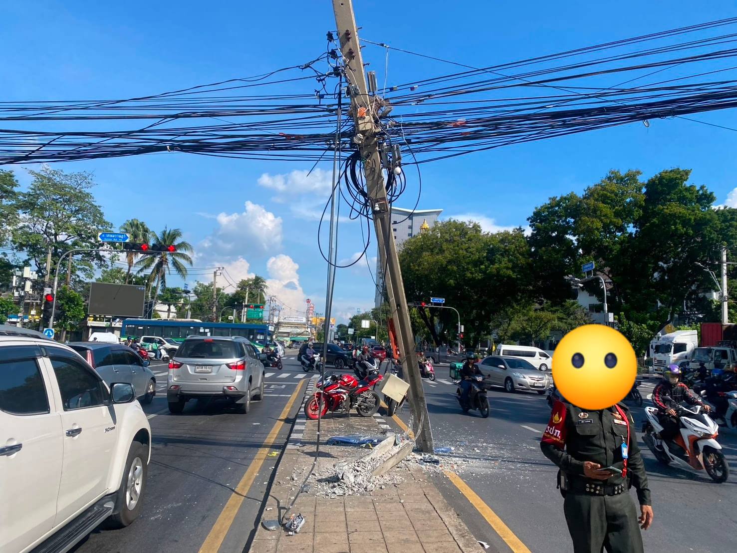 คืบหน้าเพิ่มเติม กรณีอุบัติเหตุ รถบรรทุก ชนเสาไฟฟ้าหัก บนถนนสุนทรโกษา ทิศทางจาก 5 แยก ณ ระนอง มุ่งหน้า ไปอาจณรงค์ เหตุเกิดก่อนถึงสี่แยกกรมศุลกากร กรณีดังกล่าวจนท.สน.ท่าเรือ ย้ายรถพ้นแล้ว คงเหลือการดำเนินการติดตั้งเสาไฟฟ้าต้นใหม่ การจราจรพื้นที่ติดชะลอตัวสะสม โดยเฉพาะ ถนนพระราม 3 ขาเข้า ช่วงทางรถไฟถนนเชื้อเพลิง รวมไปถึง ถนนเกษมราษฏร์