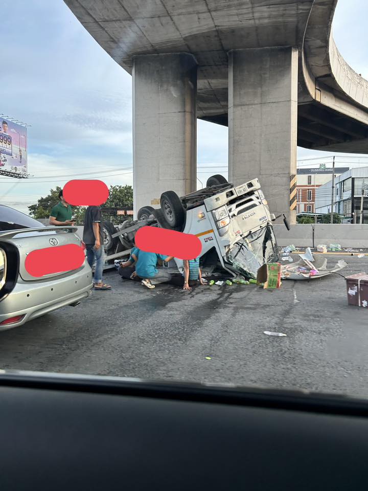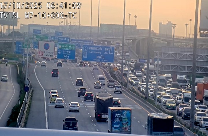 06.40 น. มอเตอร์เวย์ (ทล.7) มุ่งหน้ากรุงเทพ กม.9+300 มีอุบัติเหตุ รถพลิกคว่ำ กีดขวาง 2 ช่องทางขวา การจราจรติดขัด ท้ายแถวสะสมประมาณ 3 กม.
