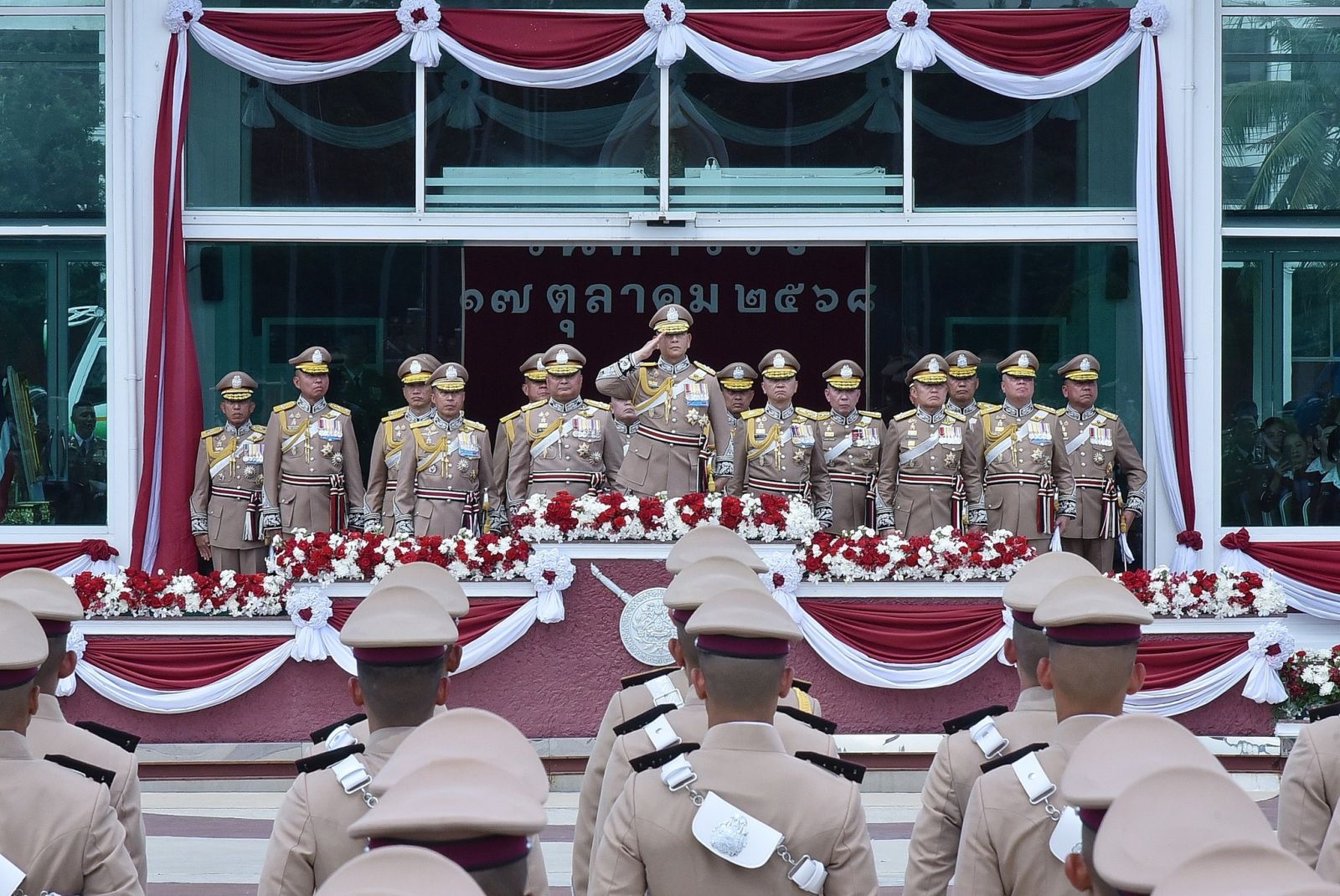 วันนี้ (17 ตุลาคม 2568) เวลา 09.30 น. พล.ต.อ.กิตติ์รัฐ พันธุ์เพ็ชร์ ผู้บัญชาการตำรวจแห่งชาติ (ผบ.ตร.) เป็นประธานในพิธีต่าง ๆ เนื่องในวันตำรวจ ประจำปี 2568 ณ โรงเรียนนายร้อยตำรวจ อ.สามพราน จ.นครปฐม พร้อมด้วย คุณกนกวรรณ พันธุ์เพ็ชร์ นายกสมาคมแม่บ้านตำรวจ โดยมี รอง ผบ.ตร., จเรตำรวจแห่งชาติ (จตช.), ผู้ช่วย ผบ.ตร., รอง จตช., ข้าราชการตำรวจ และคณะสมาคมแม่บ้านตำรวจ ร่วมพิธีวางพานพุ่มถวายราชสักการะพระบรมราชานุสาวรีย์ รัชกาลที่ 5, พิธีสดุดีข้าราชการตำรวจที่เสียชีวิตจากการปฏิบัติหน้าที่ราชการ, พิธีกล่าวคำสัตย์ปฏิญาณตนและสวนสนามของนักเรียนนายร้อยตำรวจ
