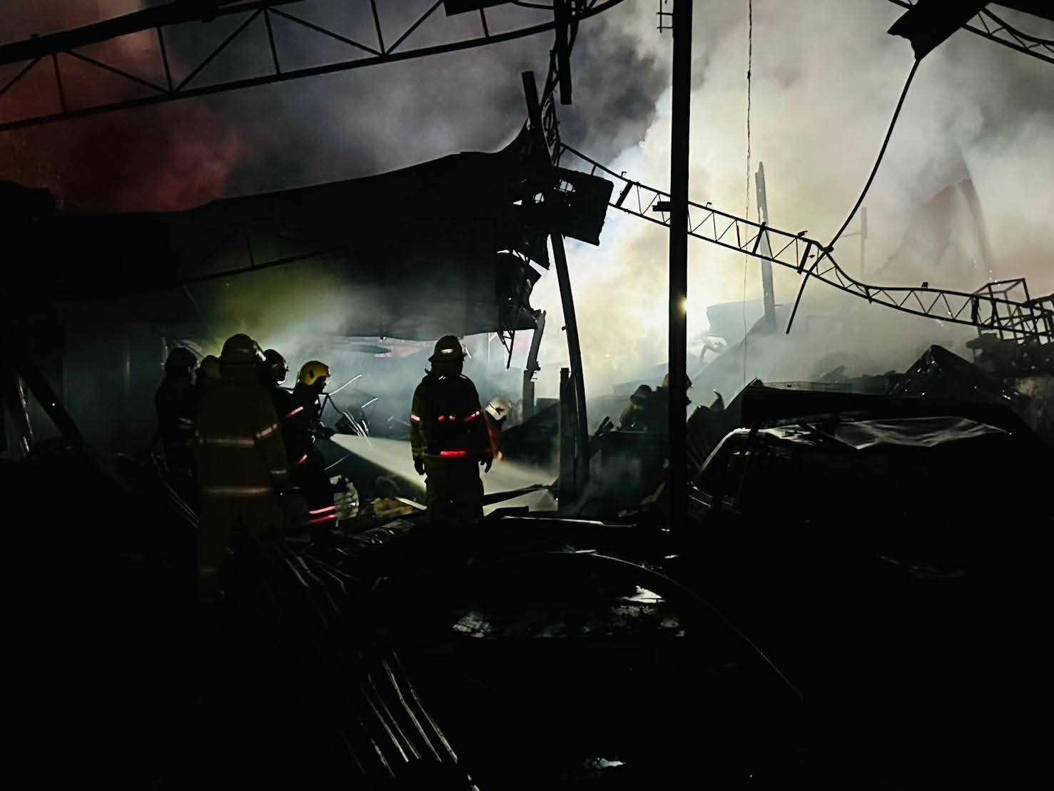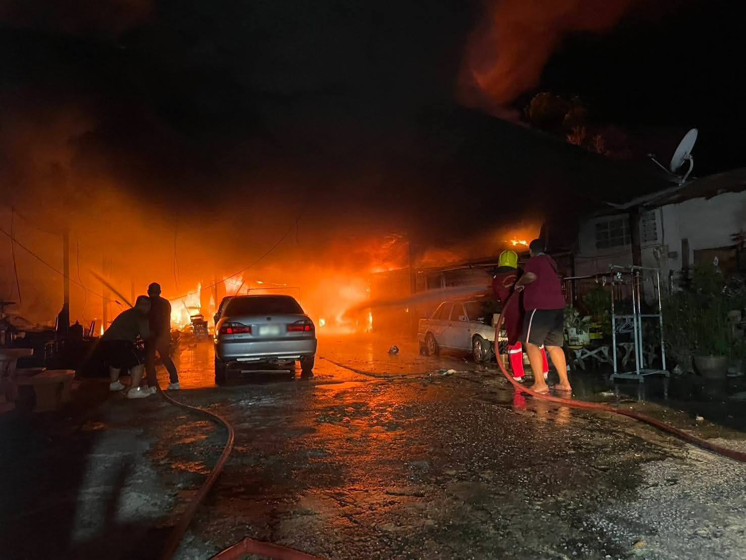 เพลิงไหม้ในอู่ซ่อมรถ ย่านเมืองลพบุรี โครงสร้างหลังคาบางส่วนทรุดตัว เจ้าของได้รับบาดเจ็บ