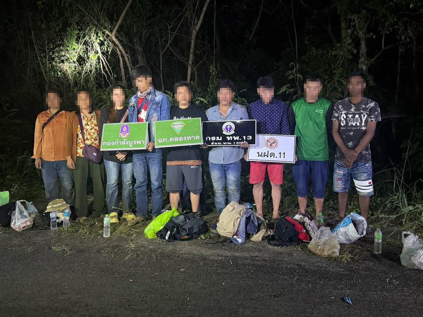กองกำลังบูรพา ,หน่วยเฉพาะกิจคลองหาด โดยชุดควบคุมกรมทหารพรานที่ 13 (กองร้อยทหารพรานที่ 1303) ร่วมกับ หมวดเคลื่อนที่เร็วหน่วยเฉพาะกิจคลองหาด ,หน่วยเฝ้าตรวจชายแดนที่ 11 ,ชุดปฏิบัติงานข่าวที่ 3 กองกำลังบูรพา ,หมวดทหารม้าลาดตระเวน ทำการลาดตะเวนด้วยการเดินเท้าเฝ้าตรวจในพื้นที่รับผิดชอบ เพื่อป้องกันอาชญากรรม และการลักลอบขนแรงงานต่างด้าวบริเวณแปลงพื้นที่ทำกินของราษฎร บ้านเขาดิน หมู่ 8 ตำบลคลองหาด อำเภอคลองหาด จังหวัดสระแก้ว ระหว่างออกตรวจพบกลุ่มบุคคลต้องสงสัยหลบซ่อนอยู่ในป่ามีลักษณะคล้ายแรงงานชาวกัมพูชาชุดตรวจร่วมจึงส่งสัญญาณให้หยุดเพื่อตรวจค้น ผลการตรวจค้นพบแรงงาน ชาวกัมพูชาจำนวน 9 คน(ชาย 6 คน ,หญิง 3 คน)