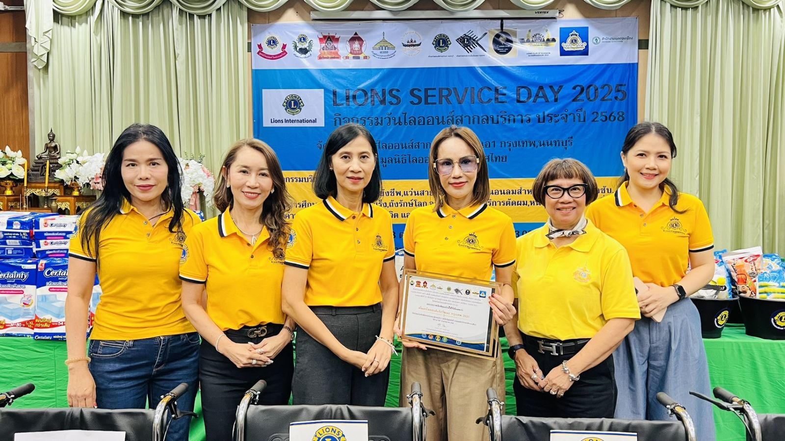 ดร.อนัญญา ธนปฏิญญากุล นายกก่อตั้งสโมสรไลออนส์แจ้งวัฒนะ กรุงเทพ นำทีมกรรมการก่อตั้งสโมสร ร่วมมอบ ทุนการศึกษา มอบทุนมะเร็ง รถวีลแชร์ แว่นสายตา บริการตัดผม