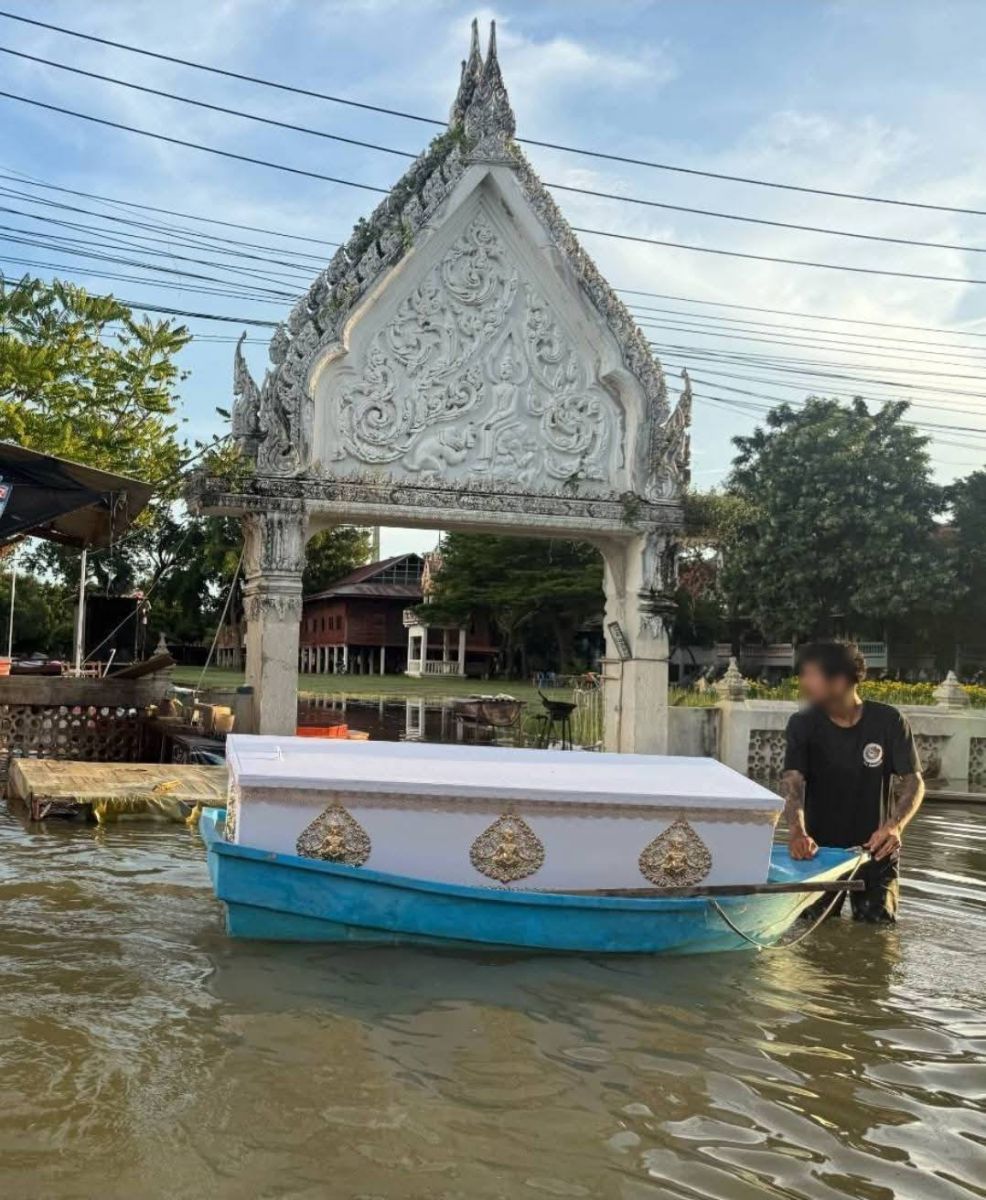 ชายชราวัย 83 ปี สิ้นใจคาบ้านที่ถูกน้ำล้อม กู้ภัย นำเรือบรรทุกโลง ฝ่ากระแสน้ำ นำร่างคุณตาส่งวัดบำเพ็ญกุศล จ.พิจิตร