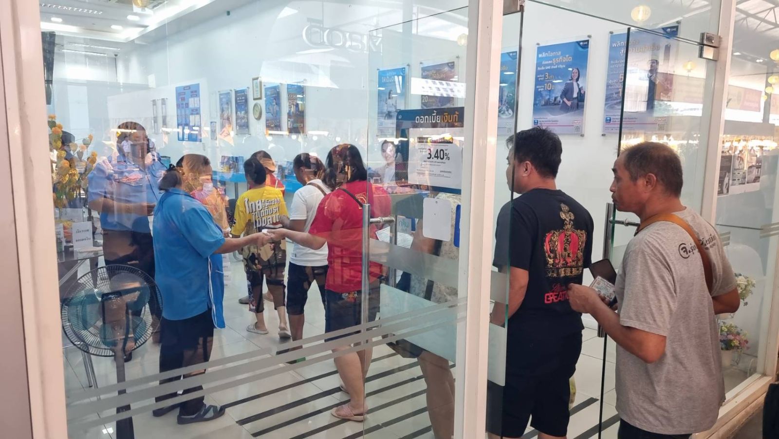 นนทบุรี : วันที่ 20 ต.ค.68 ประชาชนแห่ยืนรอต่อแถวที่หน้าธนาคารกรุงไทยแต่เช้าตรู่ เพื่อยืนยันตัวตนขอรับสิทธิในโครงการคนละครึ่งพลัส 2568 ของรัฐบาลในวันแรกอย่างคึกคัก