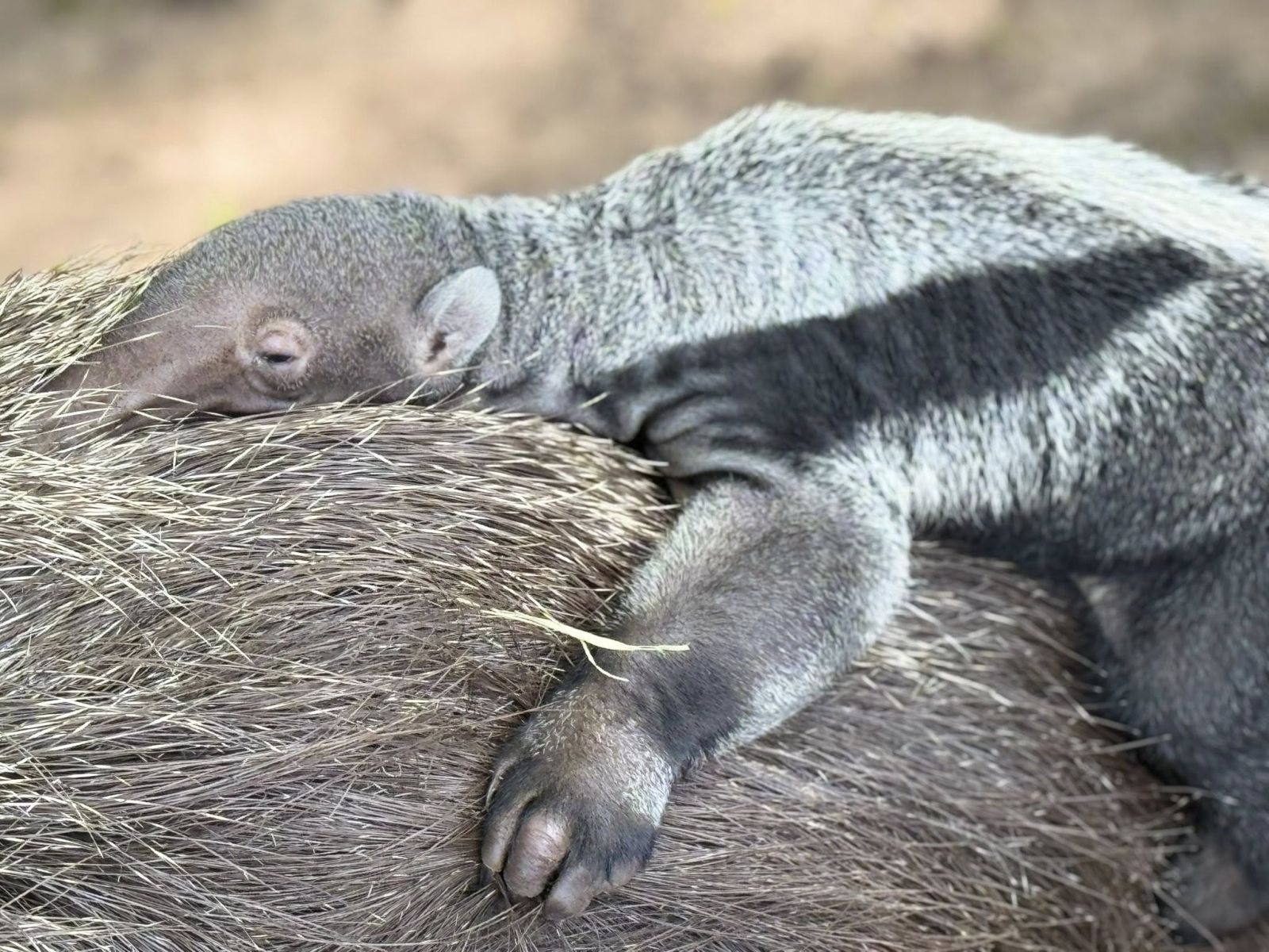 วันนี้ (21 ตุลาคม 68) เพจ "สวนสัตว์เปิดเขาเขียว Khao Kheow Open Zoo" โพสต์ข้อความระบุ นายณรงวิทย์ ชดช้อย ผู้อำนวยการสวนสัตว์เปิดเขาเขียว จ.ชลบุรี เปิดเผยว่าสวนสัตว์เปิดเขาเขียว ได้เปิดตัวสมาชิกใหม่ลูกตัวกินมดยักษ์ จำนวน 1 ตัว ยังไม่ทราบเพศ เนื่องจากแม่ยังหวงลูกอยู่ ไม่ยอมให้เข้าใกล้ เกิดเมื่อวันที่ 14 ตุลาคม 2568 จากแม่ชื่อ วิลสัน อายุ 19 ปี และพ่อชื่อ ซานดิเอโก อายุ 20 ปี โดยเจ้าหน้าที่ที่เลี้ยงดูและสัตวแพทย์ของสวนสัตว์เปิดเขาเขียว เฝ้าติดตามดูแลอย่างใกล้ชิด ซึ่งขณะนี้ลูกตัวกินมดยักษ์มีอายุ 7 วัน