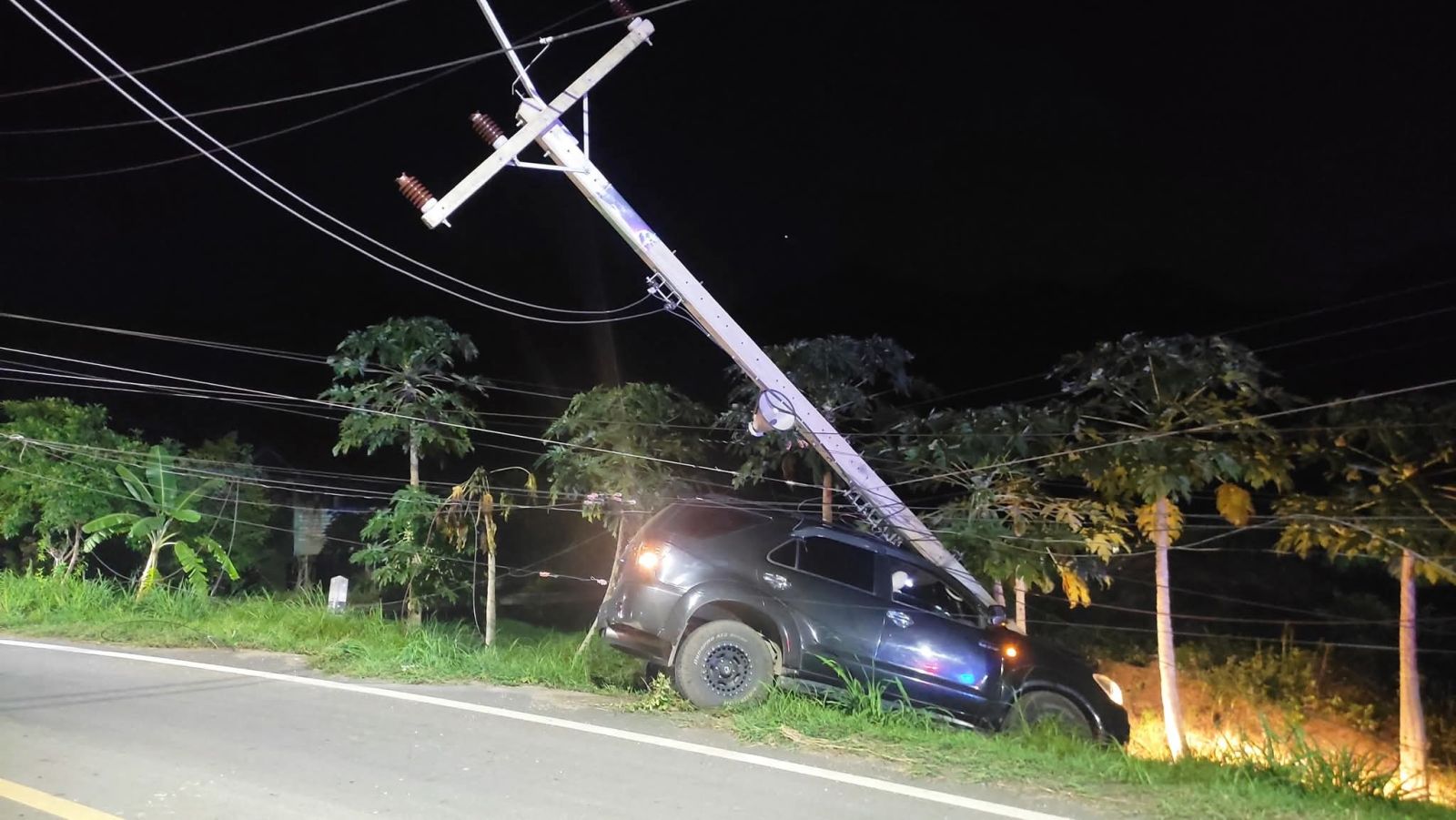 รถอเนกประสงค์เสียหลักหลุดโค้งชนเสาไฟฟ้า พบบุคคลต่างด้าว 16 ชีวิตลักลอบหนีเข้าเมือง แอบซุกซ่อนในยานพาหนะ จ.กาญจนบุรี