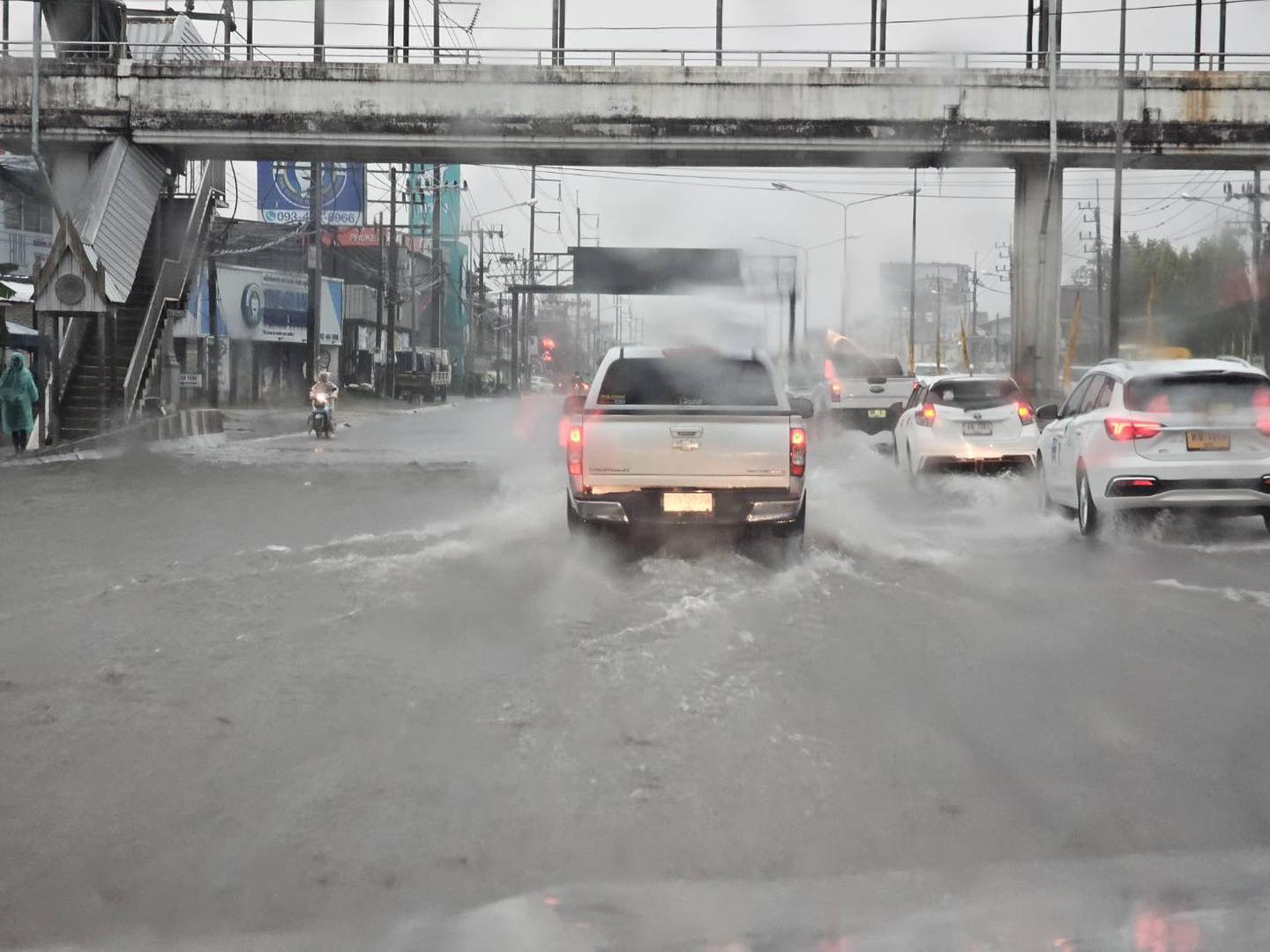 วันนี้ (23 ตุลาคม 2568) เวลา 15.50 น. หลายพื้นที่ในจังหวัดภูเก็ตมีน้ำท่วมขังบนถนนสายหลัก โดยเฉพาะช่วงถนนเทพกษัตรี ฝั่งขาเข้าเมืองภูเก็ต บริเวณหน้าโรงเรียนมุสลิม อำเภอเมืองภูเก็ต และบริเวณก่อนถึงห้างบิ๊กซี เทพกระษัตรี ซึ่งมีน้ำท่วมขังในช่องทางการจราจร ทำให้หลายพื้นที่สามารถสัญจรได้เพียงช่องทางเดียว จึงขอให้ประชาชนที่ใช้เส้นทางดังกล่าวขับรถด้วยความระมัดระวัง เนื่องจากบางจุดยังคงมีน้ำท่วมขังและพื้นถนนลื่น เพื่อป้องกันอุบัติเหตุที่อาจเกิดขึ้นจากสภาพอากาศที่ไม่เอื้ออำนวยในช่วงนี้
