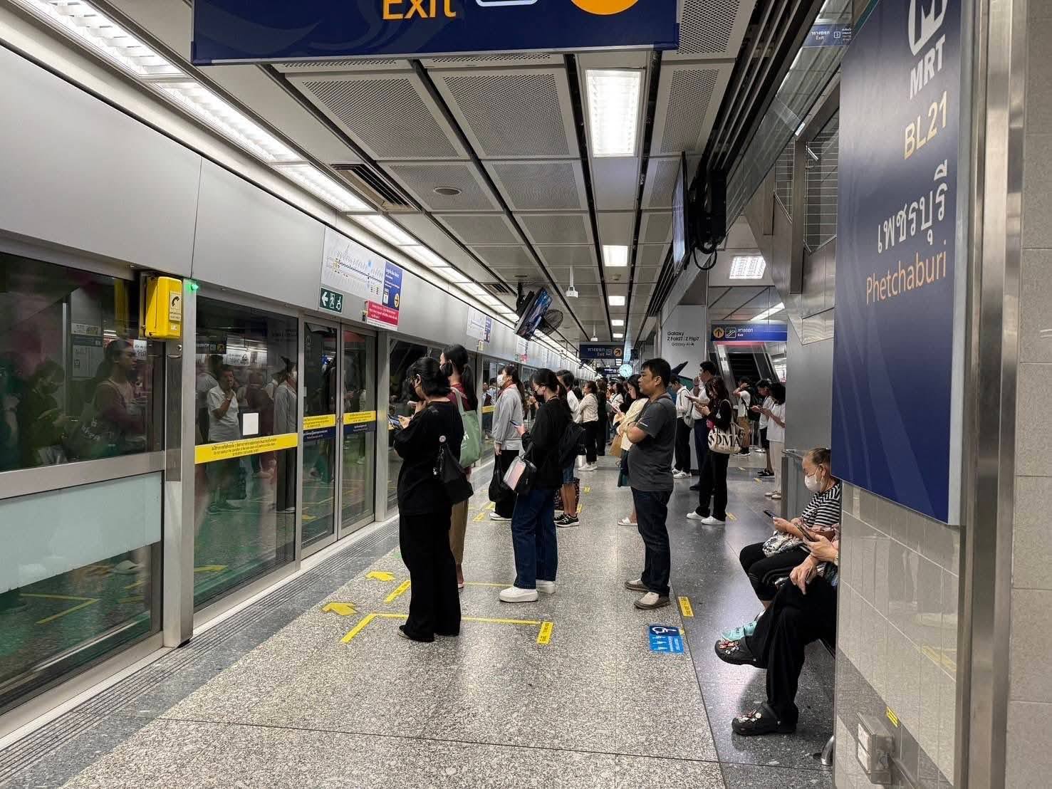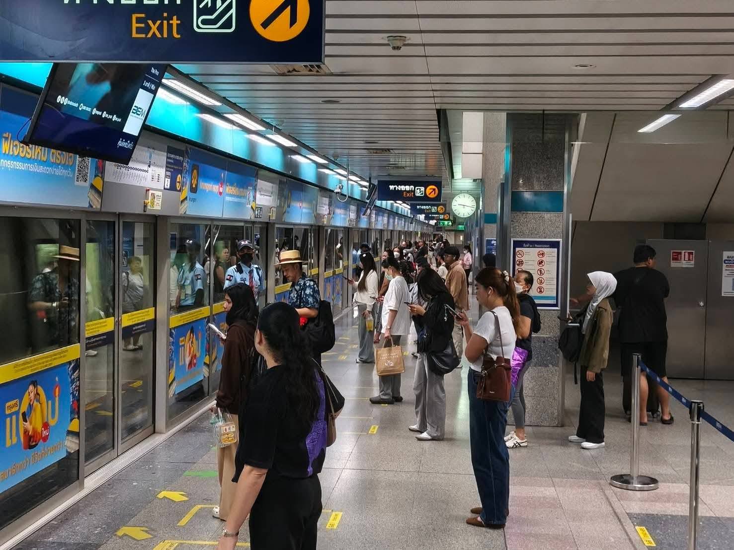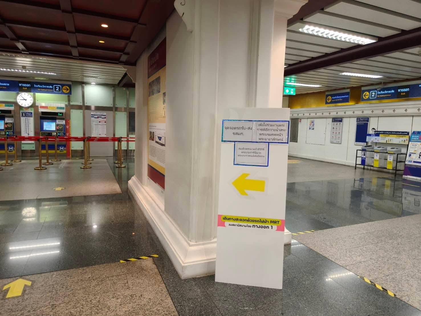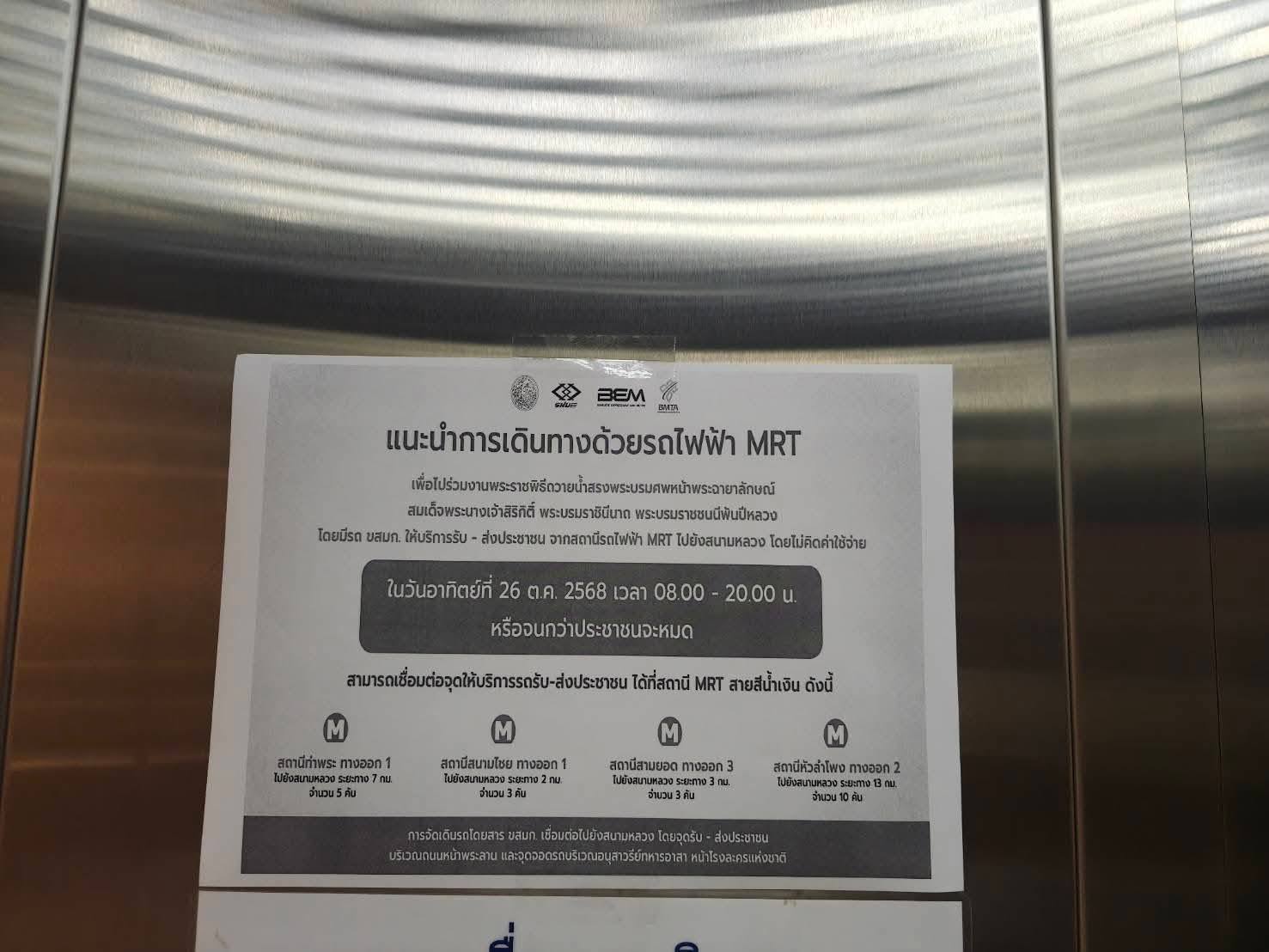 บรรยากาศ MRT เตรียมพร้อมให้บริการประชาชนที่เดินทางถวายสักการะพระบรมศพ สมเด็จพระนางเจ้าสิริกิติ์ พระบรมราชินีนาถ พระบรมราชชนนีพันปีหลวง โดย ขสมก. จัดรถบริการรับ - ส่ง ฟรี ระหว่างสถานีรถไฟฟ้า MRT สายสีน้ำเงิน ไปยังสนามหลวง ดังนี้