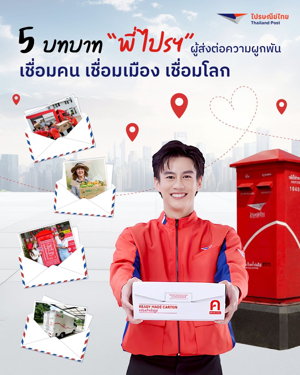 วันนี้ ไปรษณีย์ไทยยังคงเดินหน้าพัฒนาและต่อยอดบทบาทของ “พี่ไปรฯ” ให้ก้าวทันโลกยุคใหม่ พร้อมทำหน้าที่เป็นผู้เชื่อมคน เชื่อมเมือง และเชื่อมโลกอย่างแท้จริง ผ่าน 5 บทบาทสำคัญ ที่สะท้อนหัวใจของการให้บริการด้วยความมุ่งมั่นและความใกล้ชิดแบบไทย ๆ