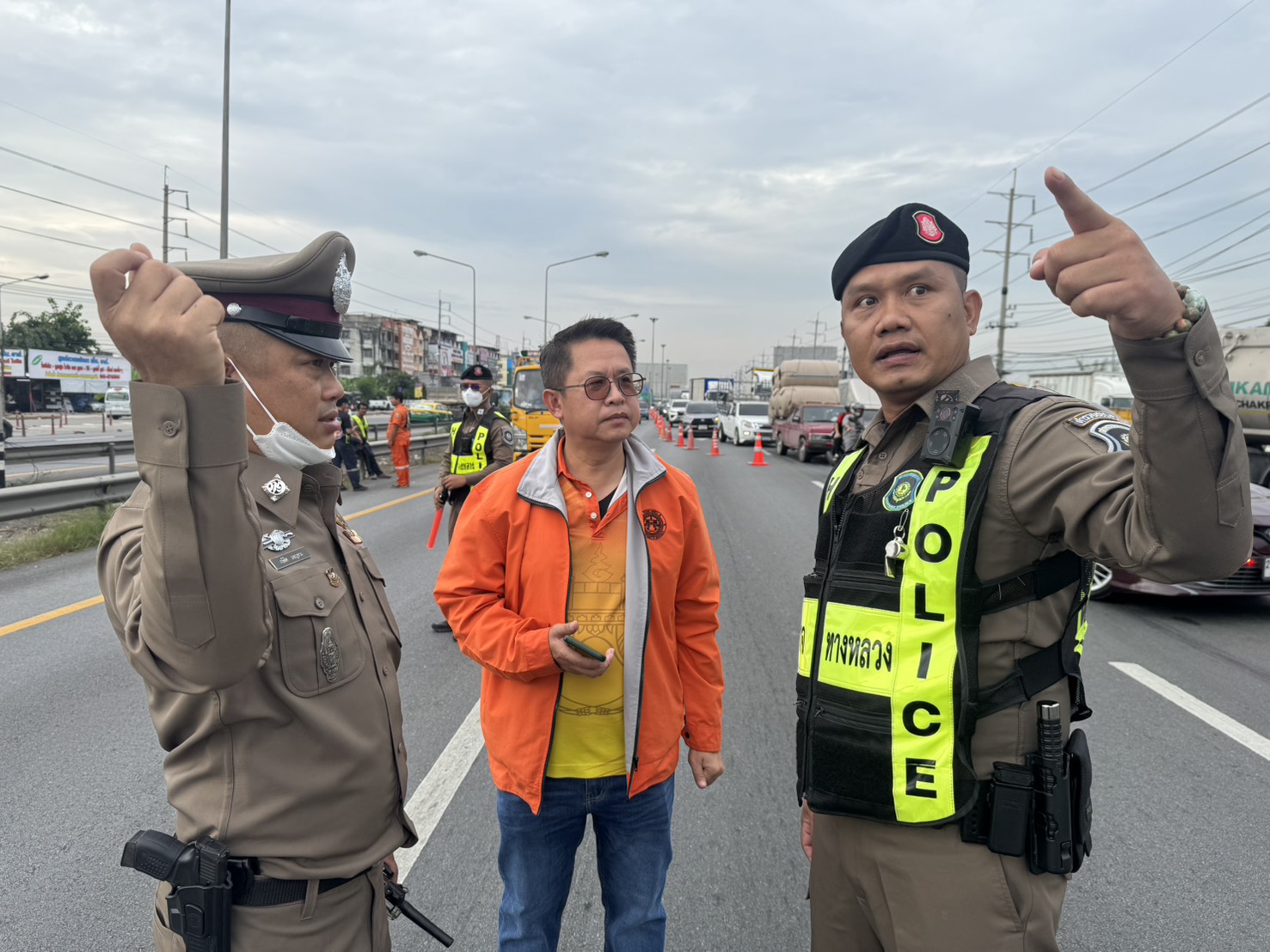 ในเวลาต่อมานายสิทธิชัย สารพรม  หัวหน้าหมวดทางหลวงบางบัวทอง พร้อมด้วยเจ้าหน้าที่ตำรวจทางหลวง ลงพื้นที่ตรวจสอบเหตุพร้อมกับเตรียมนำรถเครนมายกรื้อถอนป้ายบอกทางดังกล่าวเพื่อเปิดช่องทางจราจรให้กลับมาเป็นปกติ โดยมีเจ้าหน้าที่ตำรวจทางหลวงเร่งระบายรถที่ติดสะสมจากเส้นทางหลัก เบี่ยงออกช่องทางคู่ขนานแทน