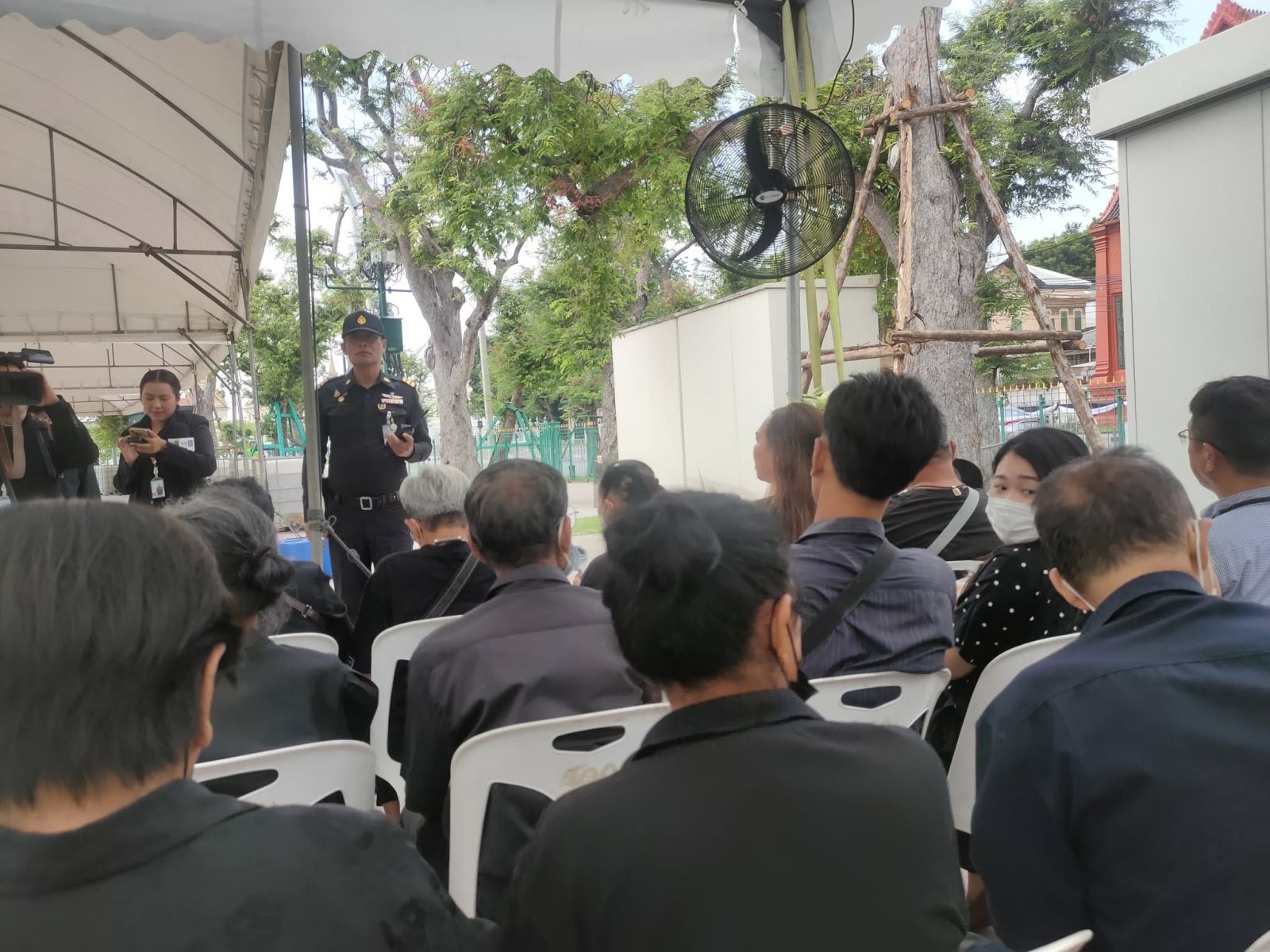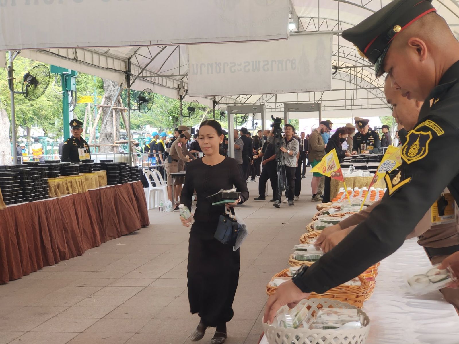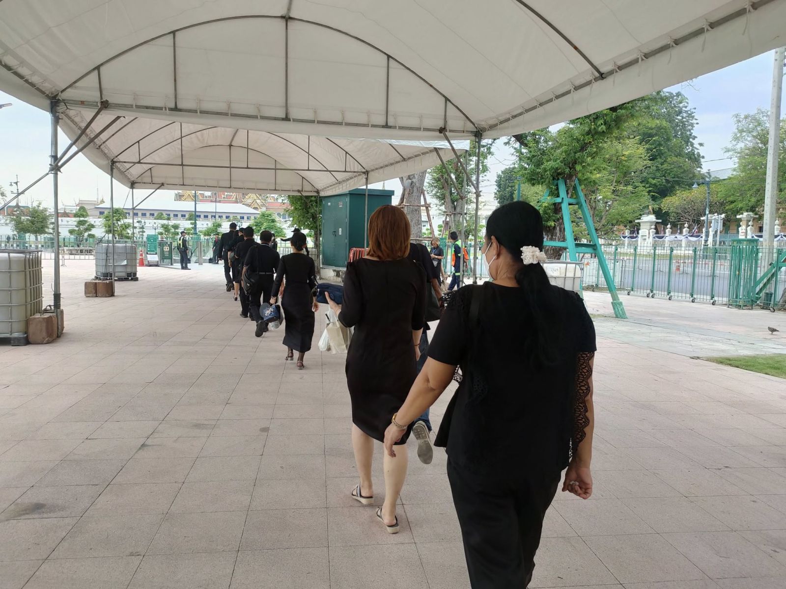 ขั้นตอนการเข้าถวายสักการะ ประชาชนที่เดินทางเข้ามาในพื้นที่สามารถเข้าสู่เต็นท์พักคอยบริเวณท้องสนามหลวงได้ 2 ช่องทางคือ ฝั่งตรงข้ามกับมหาวิทยาลัยธรรมศาสตร์ และฝั่งศาลฎีกา โดยเจ้าหน้าที่นำเก้าอี้จัดเป็นแถว แถวละ 10 ที่นั่ง แบ่งซ้าย-ขวาฝั่งละ 5 ที่นั่ง ซึ่งเปิดให้ประชาชนเข้าพื้นที่เต็นท์พักคอยตั้งแต่เวลา 06.00 น. ขณะที่กรุงเทพมหานคร (กทม.) จัดเตรียมรถสุขาเคลื่อนที่ไว้รองรับ