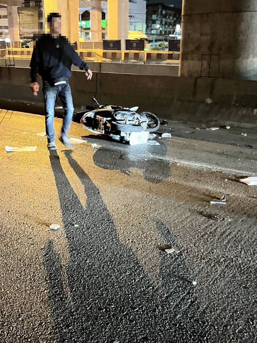 รถตู้ชนกับรถจักรยานยนต์ และมีผู้เสียชีวิตกลางถนนพระราม 2 ในช่องทางคู่ขนาน