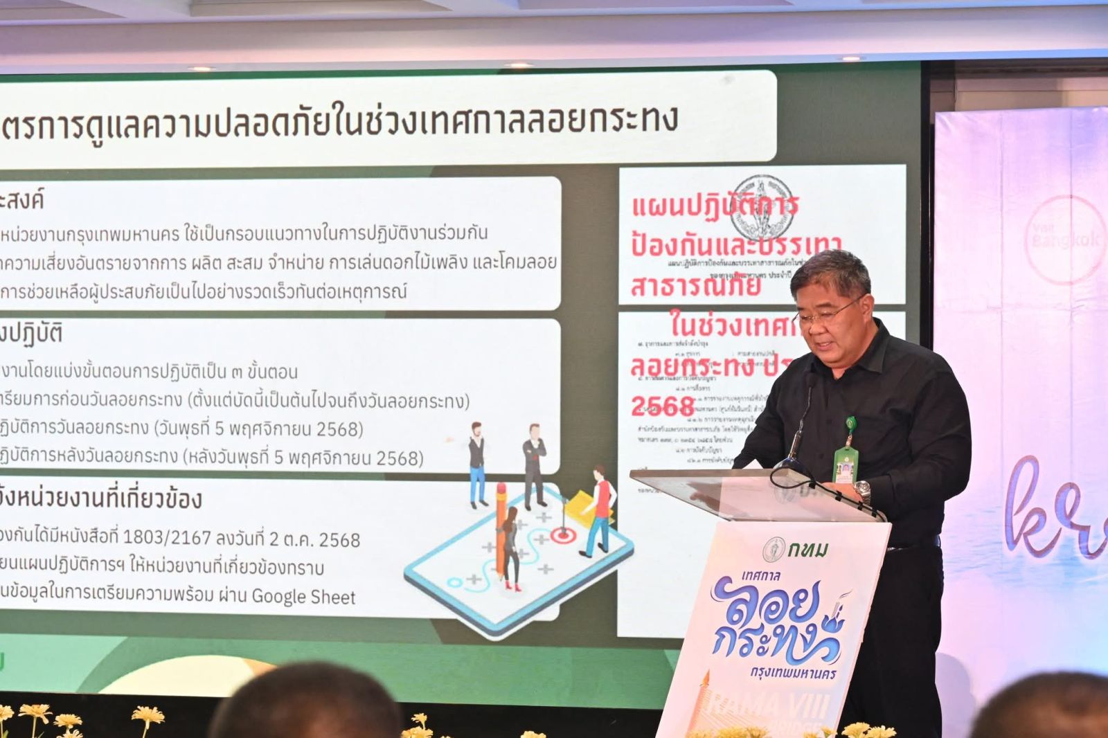 วันนี้ (29 ต.ค.2568) เวลา 13.30 น. นายเอกวรัญญู อัมระปาล โฆษกของกรุงเทพมหานคร แถลงข่าวถึงการจัดกิจกรรมเทศกาลลอยกระทงกรุงเทพมหานคร ประจำปี 2568 ณ ห้องรัตนโกสินทร์ ศาลาว่าการกรุงเทพมหานคร ซึ่งกรุงเทพมหานคร ยังคงให้มีการจัดงานลอยกระทงในหลาย ๆ พื้นที่เช่นเดิม และได้มีการปรับรูปแบบกิจกรรมต่าง ๆ ให้เหมาะสมกับช่วงเวลาถวายความอาลัยสมเด็จพระพันปีหลวง โดยการปรับรูปแบบกิจกรรม แต่ยังคงไว้ซึ่งงานประเพณี และ เน้นย้ำการจัดงานตามแนวคิด “ลอยกระทงวิถีไทย ปลอดภัย ใส่ใจสิ่งแวดล้อม” ในทุก ๆ พื้นที่จัดงาน