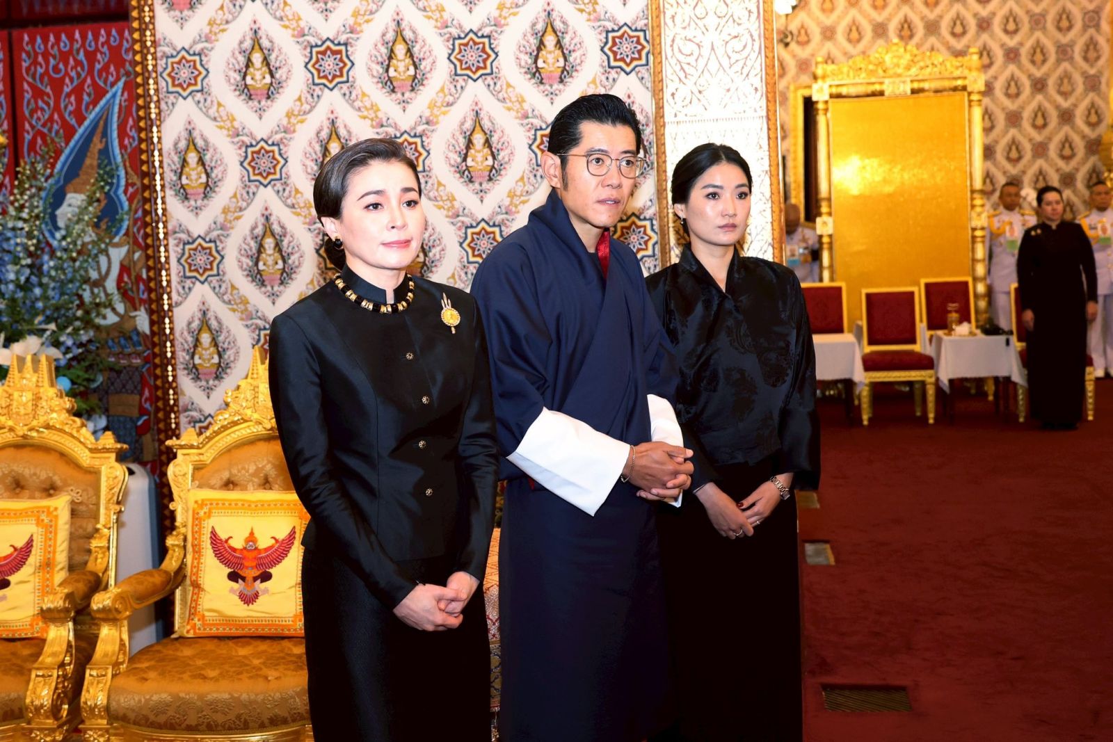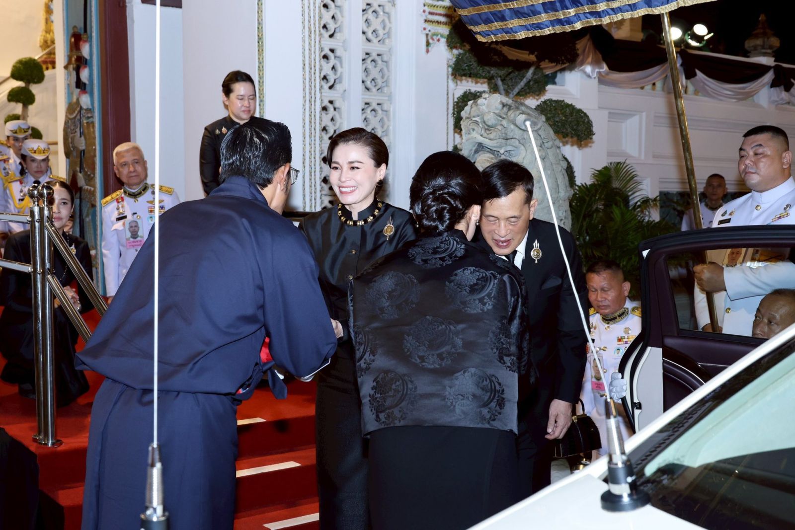 ในการนี้ สมเด็จพระเจ้าลูกเธอ เจ้าฟ้าสิริวัณณวรี นารีรัตนราชกัญญา และท่านผู้หญิงพลอยไพลิน เจนเซนเฝ้าทูลละอองธุลีพระบาทรับเสด็จ ณ พระที่นั่งดุสิตมหาปราสาท พระบรมมหาราชวัง