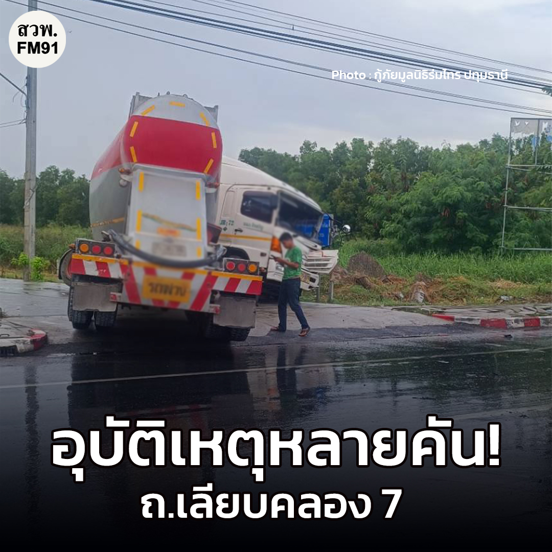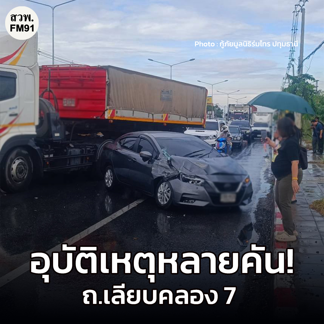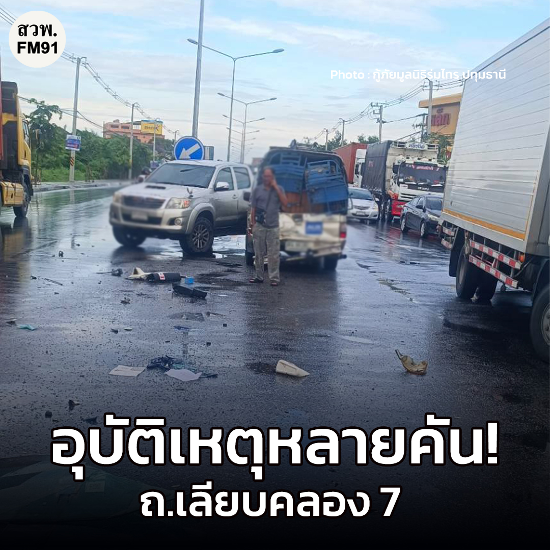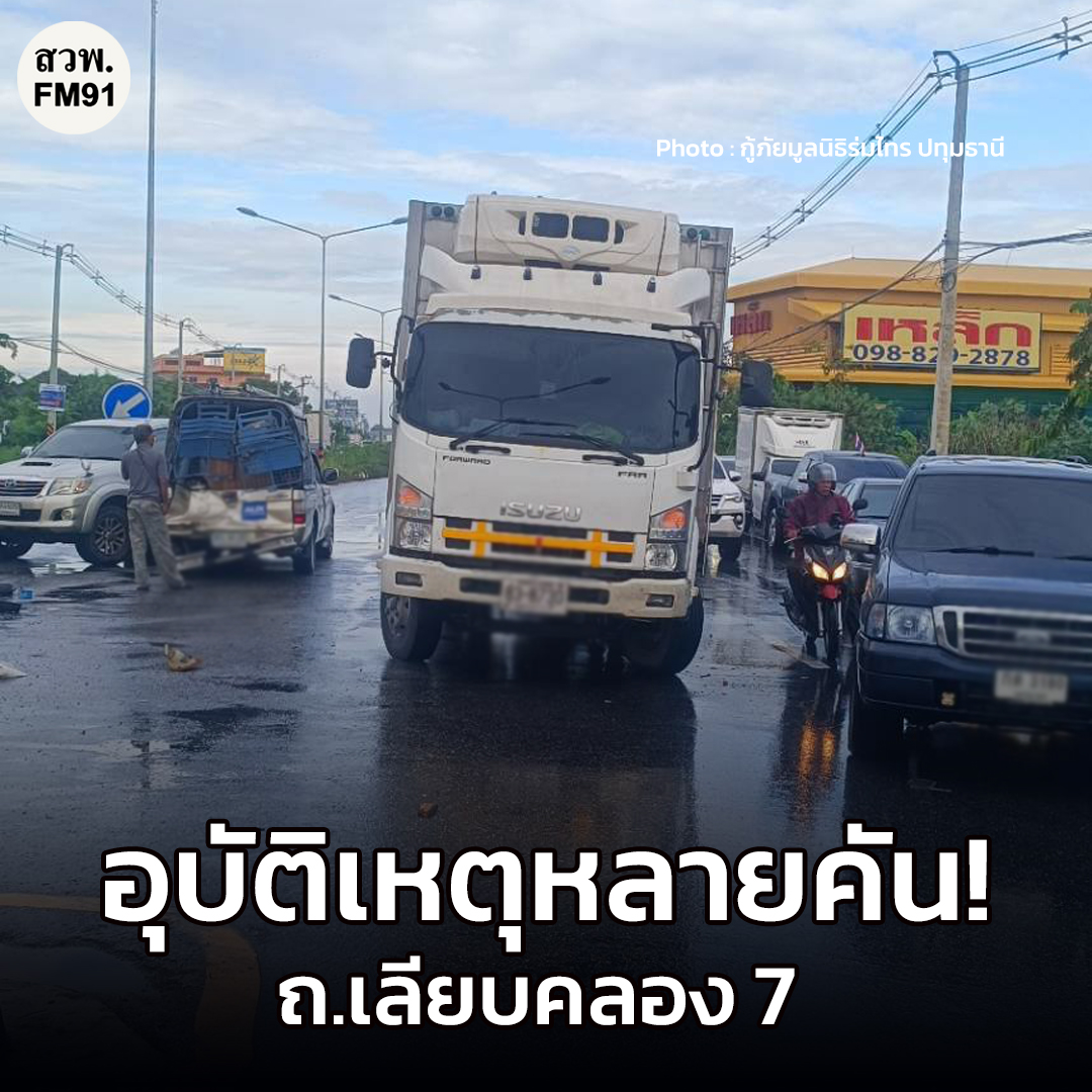 30 ต.ค. 68 เวลา 15.30 น. ถ.เลียบคลอง 7 เข้ามาจากรังสิตนครนายก มุ่งหน้า ลำลูกกา จุดกลับรถใกล้ศูนย์กระจายสินค้าเทสโก้ โลตัส รถชนกันหลายคัน อยู่ระหว่างเคลื่อนย้าย