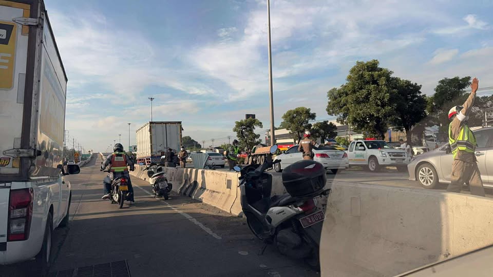 07.44 น. ถนนกาญจนาภิเษก ขาเข้า บริเวณจุดกลับรถ ก่อนถึงต่างระดับบางคูเวียง อุบัติเหตุ รถบรรทุกไม่ทราบคู่กรณี อยู่ในช่องทางหลัก กีดขวางทั้งช่องทางขวา และช่องทางซ้าย รถติดหนักมาก ท้ายแถวสะสมใต้รถไฟฟ้าสถานีคลองบางไผ่ #รายงานจราจร #อุบัติเหตุ #รถติด #FM91