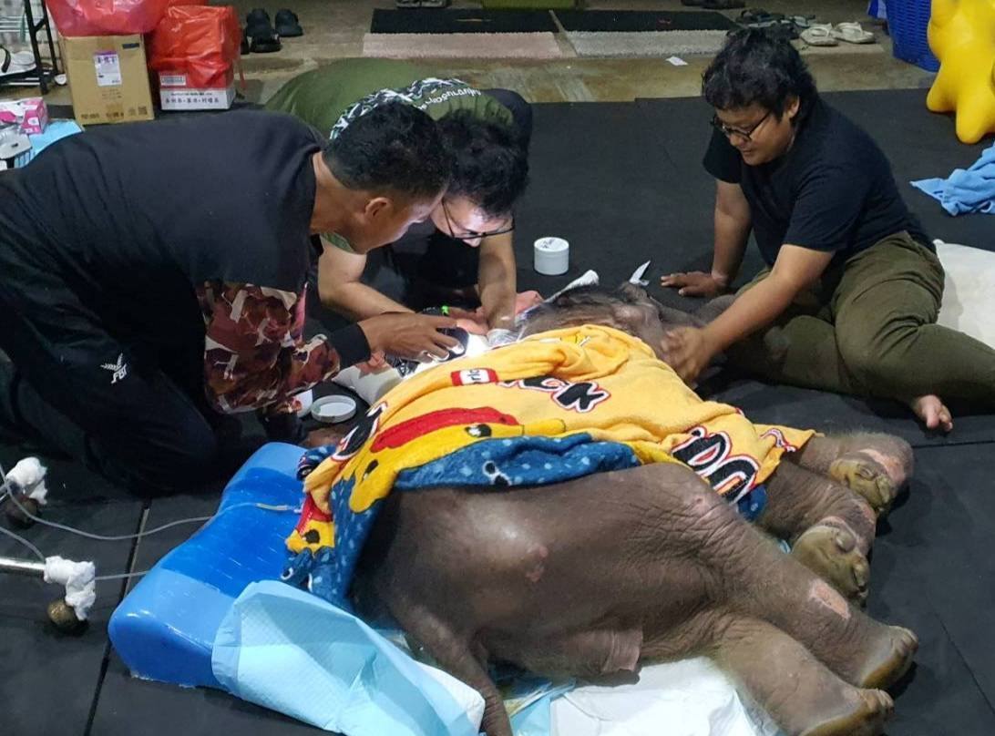 เพื่อรักษาสมดุลของร่างกาย ทีมสัตวแพทย์ให้สารน้ำทางหลอดเลือดดำตลอดทั้งวันเพื่อป้องกันภาวะขาดน้ำและพยุงระดับน้ำตาลในเลือดให้คงที่ รวมถึงให้พลาสมา (Plasma) เพื่อเสริมสร้างภูมิคุ้มกันและช่วยเพิ่มโปรตีนในเลือด