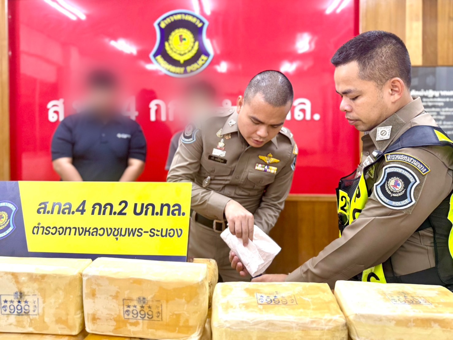 สืบเนื่องจากนโยบายของผู้บัญชาการตำรวจแห่งชาติและผู้บัญชาการตำรวจสอบสวนกลางที่มอบหมายให้กองบังคับการตำรวจทางหลวงปราบปรามเครือข่ายลักลอบขนยาเสพติดเจ้าหน้าที่ตำรวจทางหลวงชุมพรจึงได้ทำการสืบสวนวิเคราะห์เส้นทางเดินรถด้วยระบบ Big Data จนพบกลุ่มรถต้องสงสัยที่ลักลอบขนยาเสพติดลงสู่พื้นที่ชายแดนภาคใต้ โดยมีรถนำทางและรถขนยาเสพติดและใช้การเลี่ยงถนนหลักไปใช้ถนนรอง ในพื้นที่ จ.ชุมพร จึงได้วางกำลังรถวิทยุตำรวจทางหลวงเพื่อเตรียมสกัด จนกระทั่งพบรถยนต์เก๋งยี่ห้อ Honda สีบรอนด์เงิน ขับขี่อยู่บน ทล.41(เอเชีย) กม.19+600 (ขาล่องใต้) ต.วิสัยเหนือ อ.เมือง จ.ชุมพร จึงได้สกัดรถยนต์คันดังกล่าวให้หยุดเพื่อตรวจสอบ พบชาย 2 คน ทั้งคู่มีท่าทางพิรุธและให้ข้อมูลวกวน เจ้าหน้าที่ตำรวจทางหลวงจึงขอตรวจค้นรถพบถุงดำขนาดใหญ่ 3 ถุง ในช่องเก็บสัมภาระท้ายรถ ภายในเป็นมัดยาบ้าจำนวนมาก จึงได้จับกุมผู้ต้องหาทั้งสอง