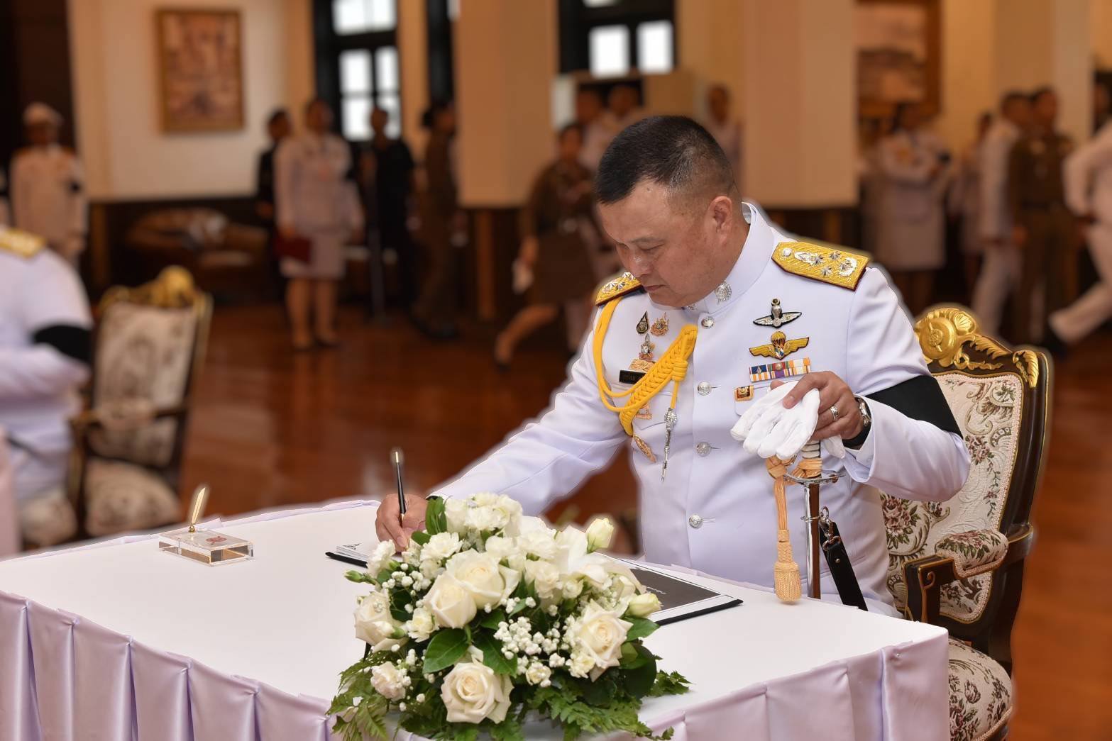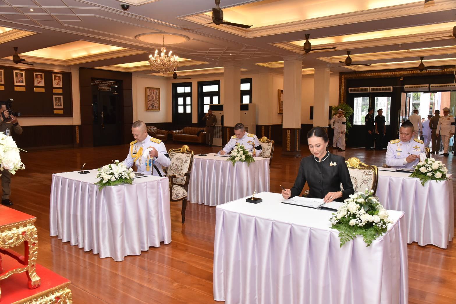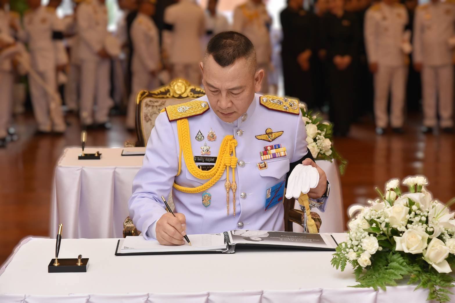จากนั้น ผบ.ตร. พร้อมด้วยนายกสมาคมแม่บ้านตำรวจ นำข้าราชการตำรวจลงนามถวายความอาลัย สมเด็จพระนางเจ้าสิริกิติ์ พระบรมราชินีนาถ พระบรมราชชนนีพันปีหลวง ณ ห้องโถง อาคาร 1 สำนักงานตำรวจแห่งชาติ