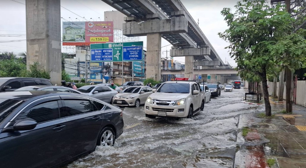 - ถนนแจ้งวัฒนะ ขาเข้า กทม. มีน้ำท่วมขังผิวการจราจร สภาพการจราจร รถมีปริมาณมาก เคลื่อนตัวได้ช้า