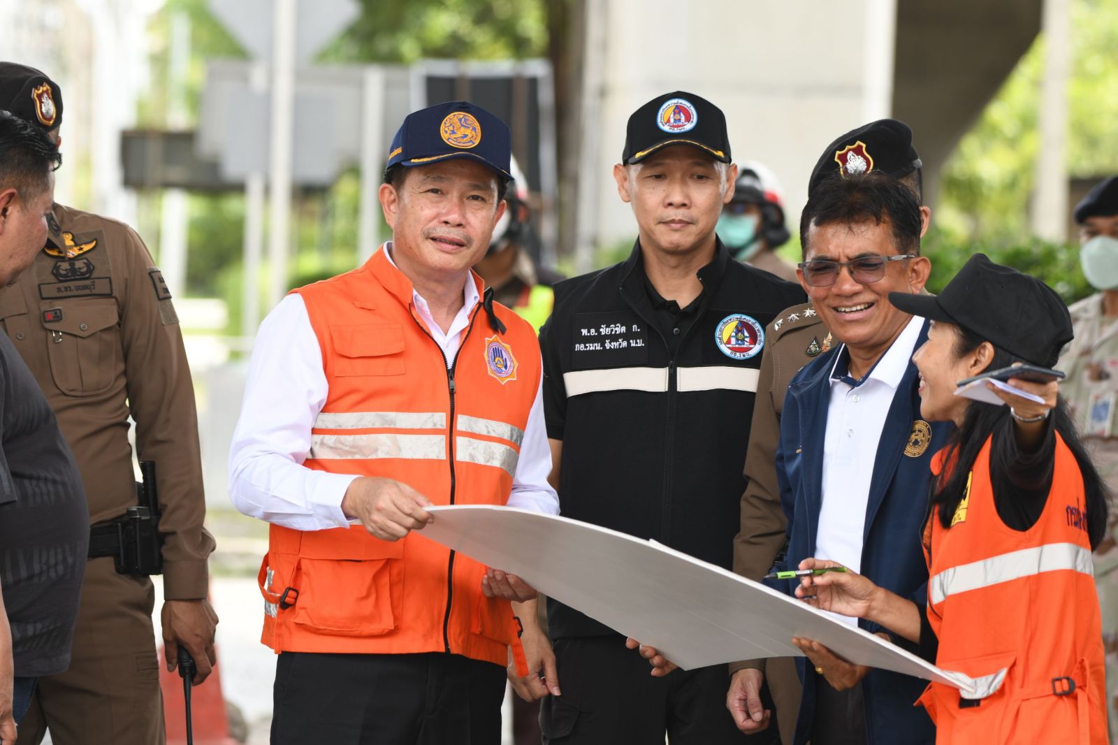 เมื่อเวลา 11.30 น. วันที่ 4 พฤศจิกายน 2568 นายเกียรติศักดิ์ ตรงศิริ ผู้ว่าราชการจังหวัดนนทบุรี พร้อมนายโสภณ สังข์แป้น รองผู้อำนวยการแขวงทางหลวงนนทบุรี เจ้าหน้าที่เทศบาลนครปากเกร็ด เจ้าหน้าที่สำนักงานป้องกันและบรรเทาสาธารณภัยจังหวัดนนทบุรี เจ้าหน้าที่ชลประทานจังหวัดนนทบุรี ตำรวจ หน่วยงานที่เกี่ยวข้อง ลงพื้นที่ตรวจน้ำท่วมถนนแจ้งวัฒนะ อ.ปากเกร็ด จ.นนทบุรี ที่บริเวณหน้า บริษัท ซีอาร์ซี ไทวัสดุจำกัด สำนักงานใหญ่ สาขาแจ้งวัฒนะ ต.บางพูด อ.ปากเกร็ด จ.นนทบุรี