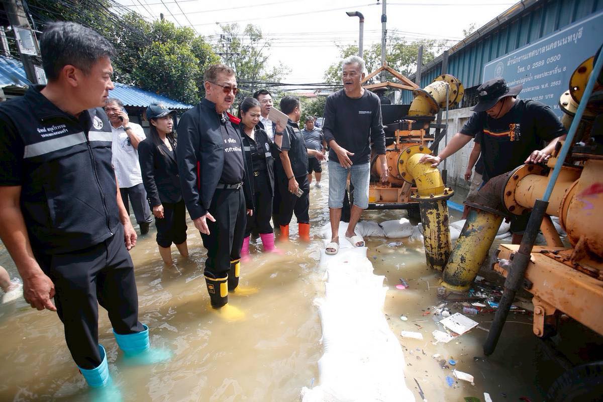 วันที่ 4 พฤศจิกายน 2568 นายสมนึก ธนเดชากุล นายกเทศมนตรีนครนนทบุรี พร้อมด้วยรองนายกเทศมนตรี สมาชิกสภาเทศบาล คณะผู้บริหาร หัวหน้าส่วนราชการ ลงพื้นออกตรวจสถานการณ์น้ำท่วมในพื้นที่หมู่บ้านประชานิเวศน์ 3 ,สถานีสูบน้ำคลองส่วย ,ซอยประชาชื่น 8 ตามชุมชนต่างๆที่มีน้ำท่วมขัง และสถานีสูบน้ำปลายคลองบางเขน เพื่อเร่งแก้ไขปัญหาและสั่งการให้เร่งระบายน้ำในพื้นที่ให้ลดลง จากสถานการณ์ฝนตกหนักในพื้นที่ช่วง 2-3 วันติดต่อกัน ส่งผลให้ปริมาณน้ำทุกคลองเพิ่มสูงขึ้น