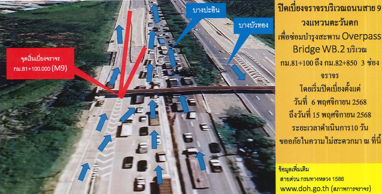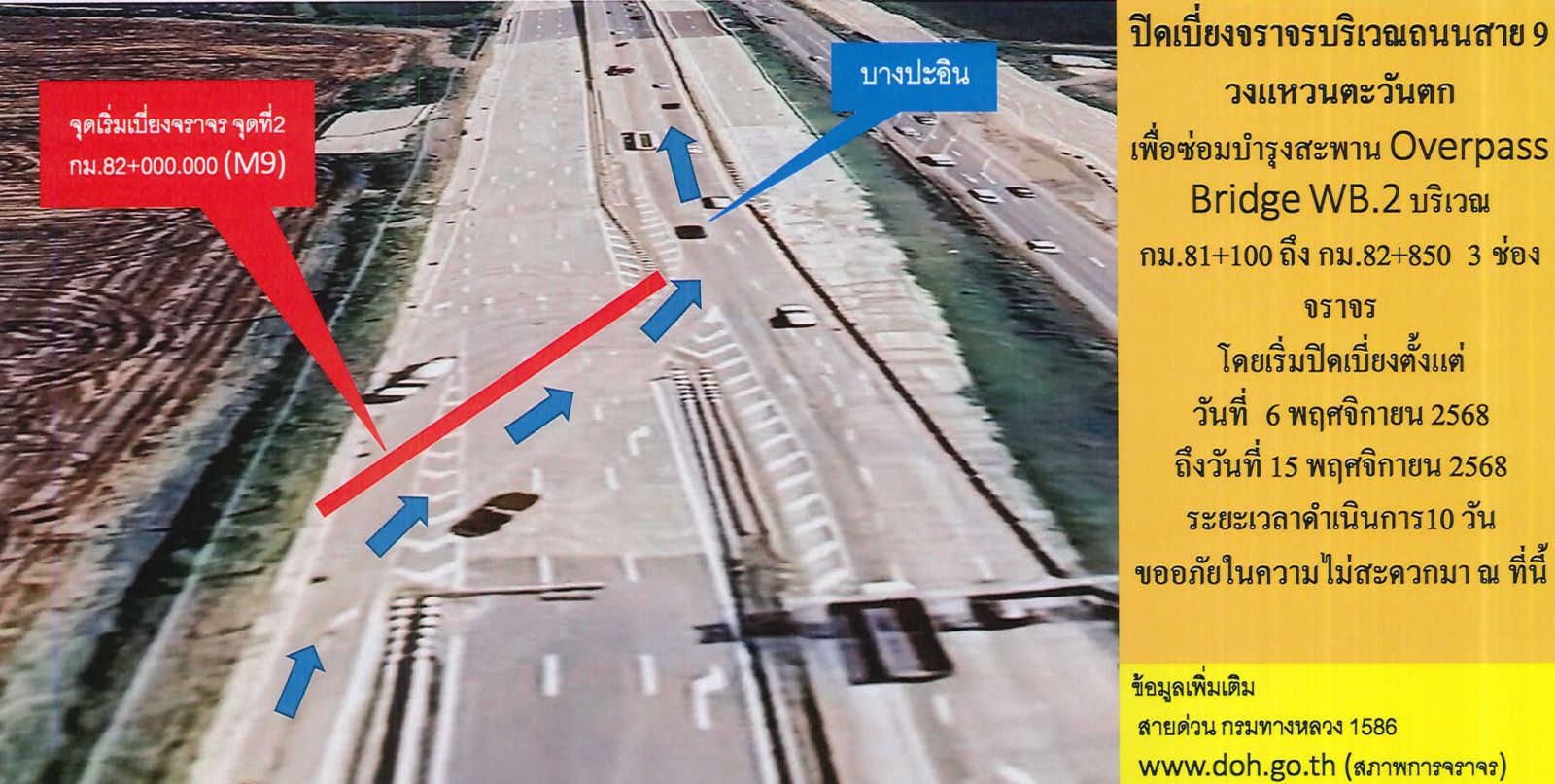 ขออภัยในความไม่สะดวก สอบถามรายละเอียดเพิ่มเติมได้ที่สายด่วนกรมทางหลวง 1586