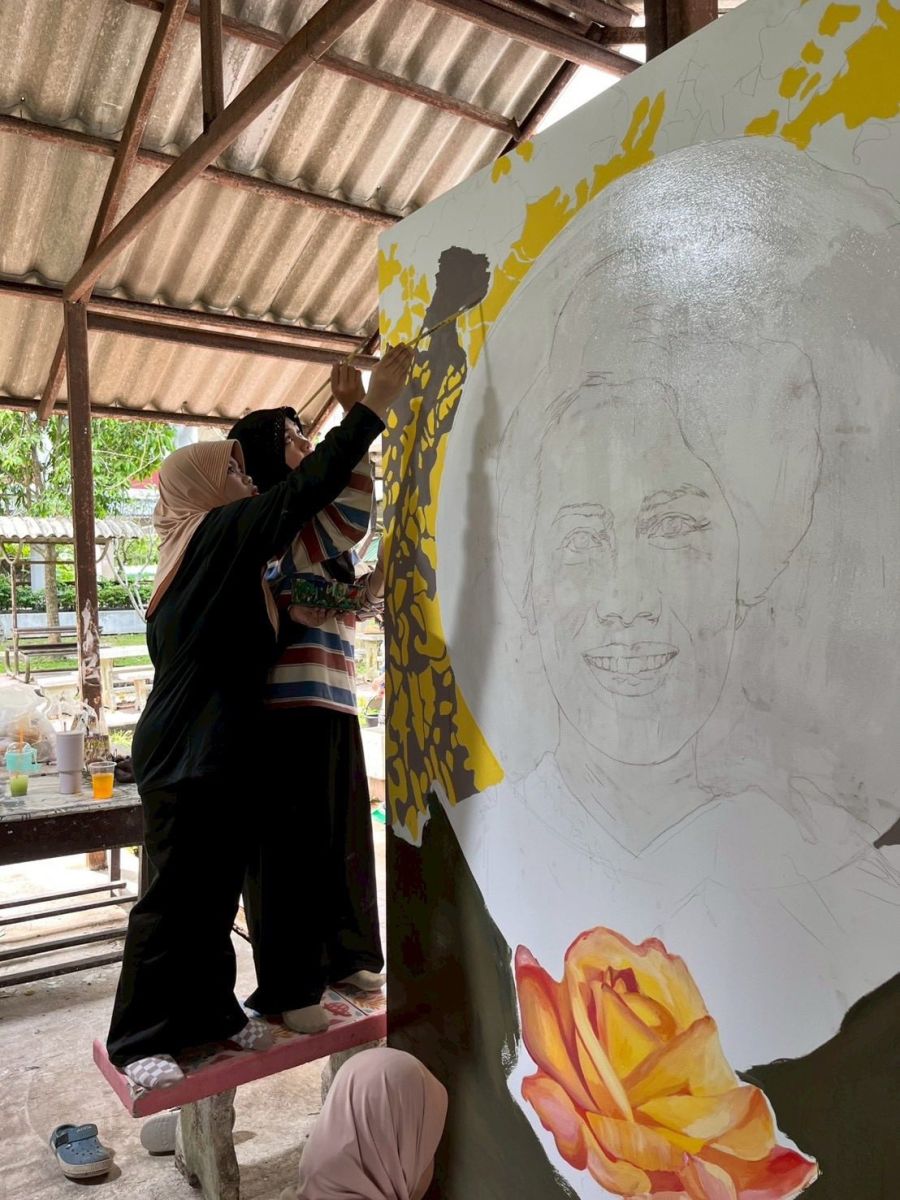นักศึกษา–คณาจารย์ มรย. ร่วมศิลปินชายแดนใต้ วาดภาพด้วยหัวใจ ถวายอาลัย “แม่ของแผ่นดิน”