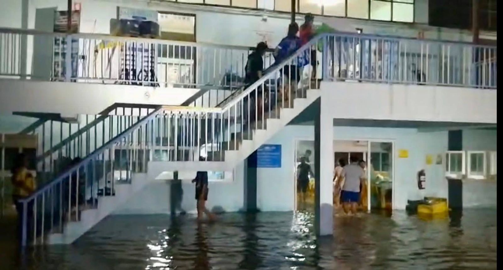 ด้านนายสตกฤช วิชิตพันธ์ ผอ.โรงเรียนวัดเมตารางค์ บอกว่ามีนักการภารโรงได้โทรแจ้งตนเองว่ามีน้ำได้ทะลักจากถนนเข้ามาท่วมที่โรงเรียนตนเองจึงรีบมา ซึ่งขณะนี้น้ำได้เข้าท่วมทั่วทั้งโรงเรียนแล้วซึ่งปกติตนเองอยู่มา 10 ปีก็ไม่เคยท่วมแบบนี้ น้ำจะท่วมโรงเรียนได้ก็ต้องข้ามถนนมาก่อน ซึ่งเวลานี้น้ำได้ทะลุถนนมา ทางเราก็ไม่ได้ป้องกันอะไรมาก่อน ขณะนี้ได้สั่งปิดโรงเรียนแล้วจำนวน 2 วัน และต้องดูสถานการณ์น้ำว่าจะเป็นอย่างไร และต้องดูว่ามีอะไรเสียหายบ้าง และอาจจะมีการปิดการเรียนการสอนต่อเนื่องซึ่งขณะนี้คุณครูและนักเรียนก็ได้มาช่วยกันขนของขึ้นไปบริเวณชั้น 2 ซึ่งจุดสูงสุดก็ประมาณหัวเข่า ซึ่งขณะนี้น้ำได้เข้ามาที่โรงเรียนเรื่อยๆ ทั้งโรงเรียนนี้มีนักเรียนทั้งหมด 55 คนคุณครู 10 คนรวมทั้งตนเองด้วยซึ่งสอนตั้งแต่อนุบาลถึง ป.6