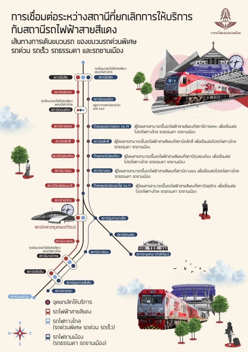 กลุ่มขบวนรถธรรมดา ขบวนรถชานเมือง และขบวนรถนำเที่ยวทุกสาย จำนวน 62 ขบวน ยังคงให้บริการต้นทาง-ปลายทางที่สถานีกรุงเทพ (หัวลำโพง) ตามเดิม ตั้งแต่ กรุงเทพ สามเสน ชุมทางบางซื่อ และจะขึ้นทางยกระดับเดินรถร่วมกับรถไฟชานเมืองสายสีแดง ยกเว้นขบวนรถธรรมดา และชานเมืองในเส้นทางสายใต้ จะเดินรถระดับพื้นดินตั้งแต่สถานีชุมทางบางซื่อไปตามเส้นทางเดิม
