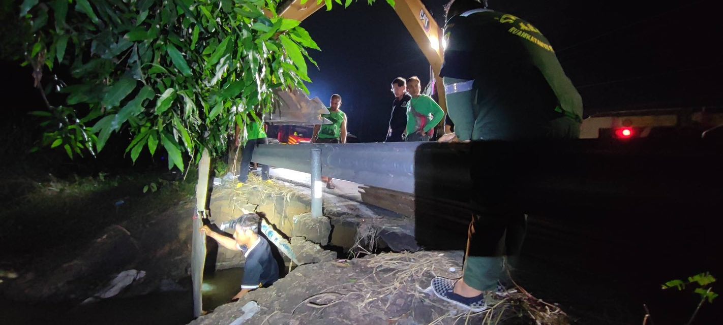 วันที่ 6 พฤศจิกายน 2568 เมื่อเวลา 01.00 น. จากกรณีน้ำกัดเซาะดินบริเวณใต้สะพานข้ามถนนปทุมธานี-สามโคก (ฝั่งตะวันออก) ในพื้นที่ ม.3 ต.เชียงรากน้อย อ.สามโคก จ.ปทุมธานี และ เข้าท่วมโรงเรียนวัดเมตารางค์รวมถึงบ้านเรือนประชาชน
