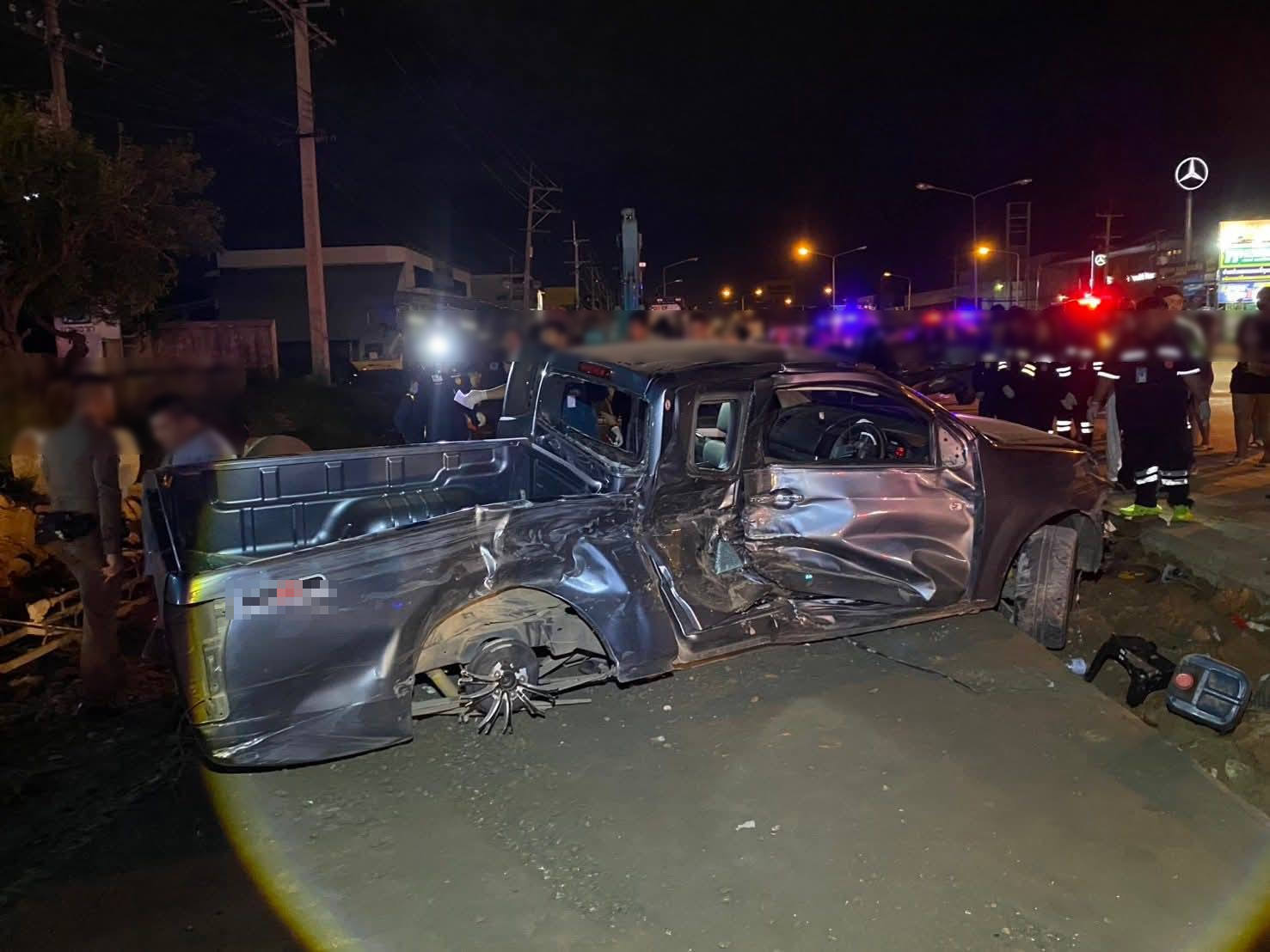 โดยที่เกิดเหตุพบรถ รถยนต์กระบะ อีซูซุ ดีแม็กซ์ สีเทา ป้ายทะเบียน กรุงเทพฯ สภาพด้านหน้ารถพังเสียหาย, รถยนต์กระบะ อีซูซุ ดีแม็กซ์ สีเทา ป้ายทะเบียน พิษณุโลก เสียหายรอบคัน, รถยนต์กระบะ นิสสัน นาวาร่า สีดำ ป้ายทะเบียน พิษณุโลก เสียหายด้านท้ายรถ และรถจักรยานยนต์ ฮอนด้า เวฟ สีเขียว - ดำ ป้ายทะเบียน พิษณุโลก สภาพพังเสียหาย