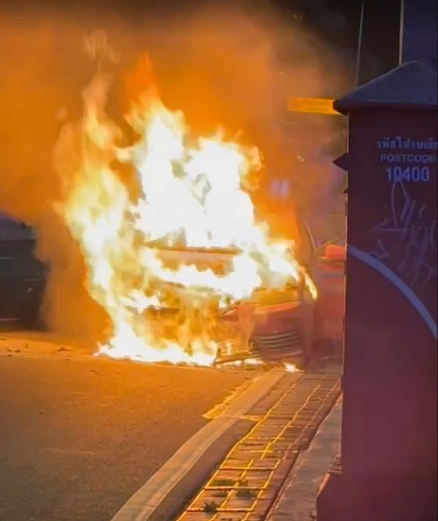 เพลิงไหม้รถยนต์ ริมถนนดินแดง เสียหายวอดทั้งคัน