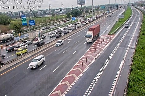 10.15 น. อุบัติเหตุ วงแหวนตะวันออก (ทล.9) กม.16+100 มุ่งหน้าบางปะอิน การจราจรติดขัดมาก ท้ายแถวสะสม 7 กม.