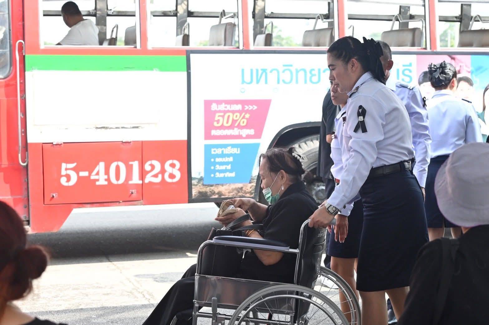 นอกจากนี้ ยังได้จัดเตรียมรถวีลแชร์และรถกอล์ฟสำหรับให้บริการผู้สูงอายุ ผู้พิการ และผู้ที่ต้องการความช่วยเหลือพิเศษ โดยมีเจ้าหน้าที่และอาสาสมัครคอยดูแลอย่างใกล้ชิด เพื่อให้ทุกคนสามารถเข้าร่วมกราบถวายบังคมได้อย่างทั่วถึงและปลอดภัย